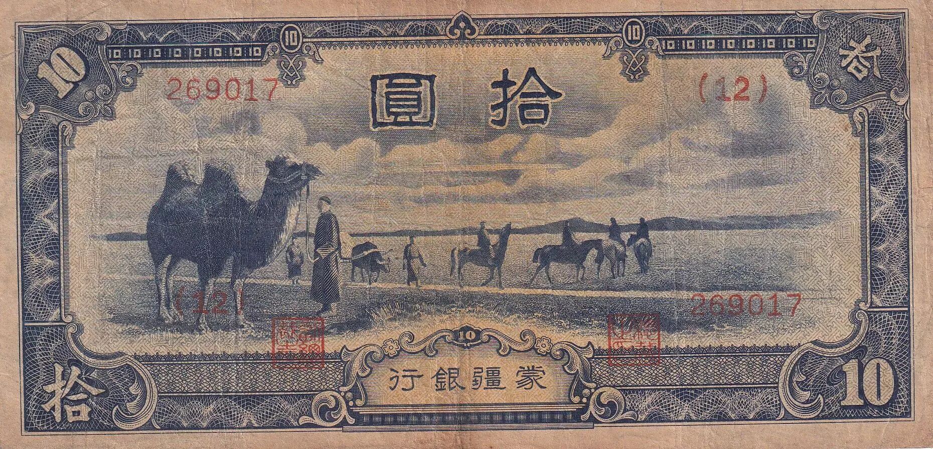 Billet Chine 10 Yuan - Mengchiang Bank - ND (1944) - Série 12 - P.J108b