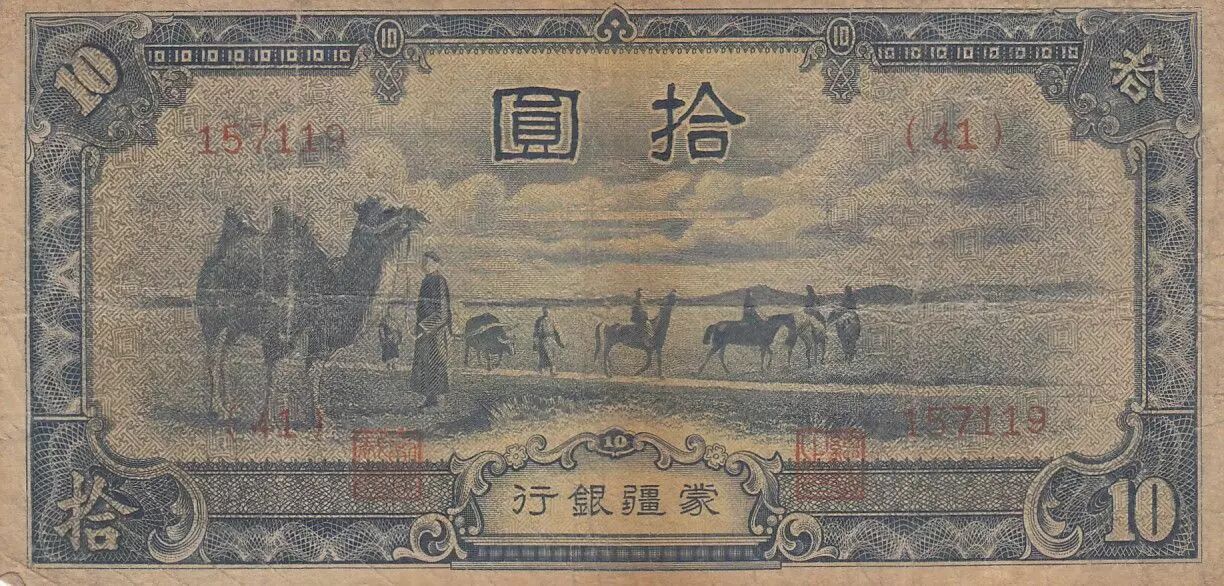 Billet Chine 10 Yuan - Mengchiang Bank - ND (1944) - Série 41 - P.J108b