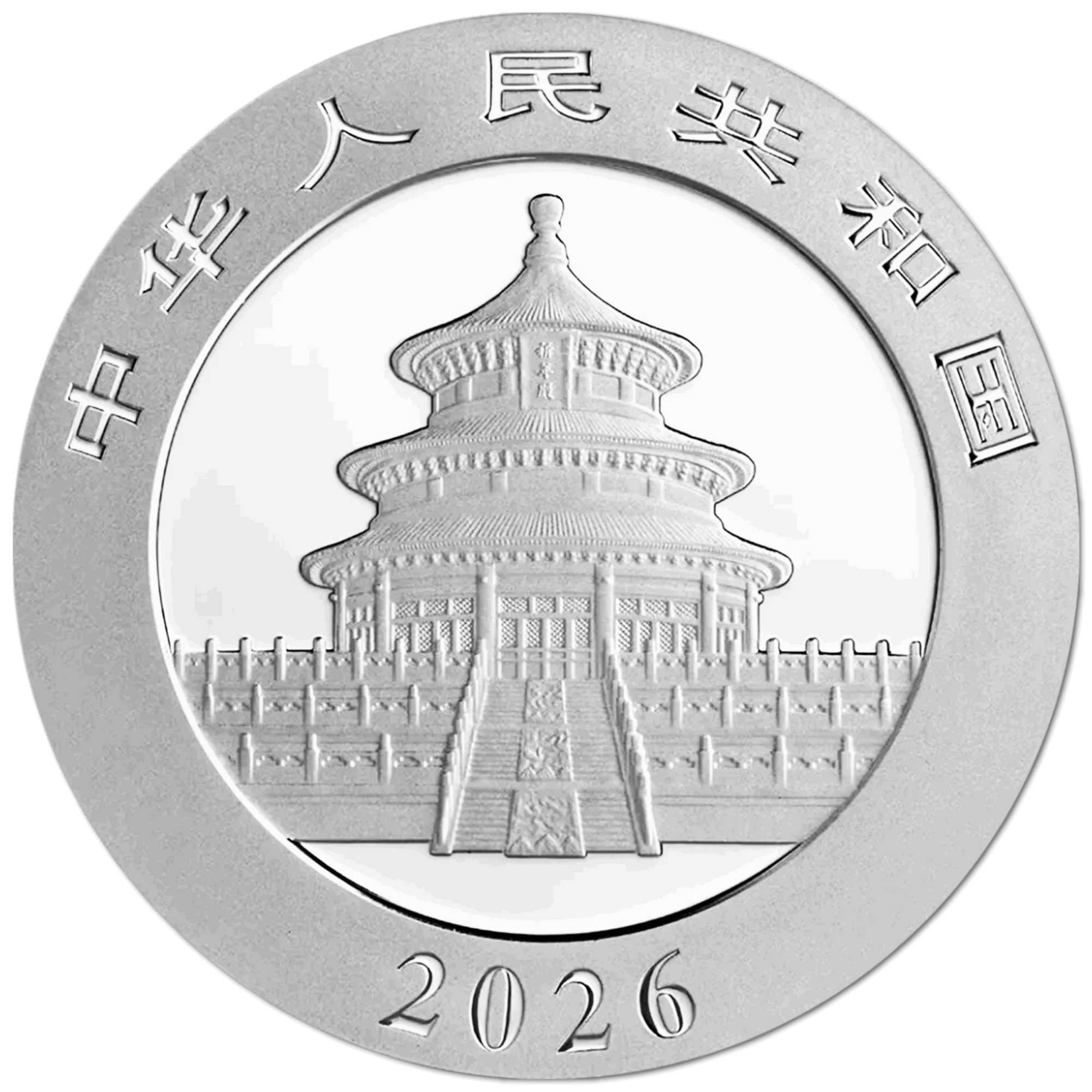 La pièce de 10 Yuans en argent, millésimée 2026, fait partie de la série Panda chinois. La pièce est frappée avec une valeur faciale de 10 Yuans.