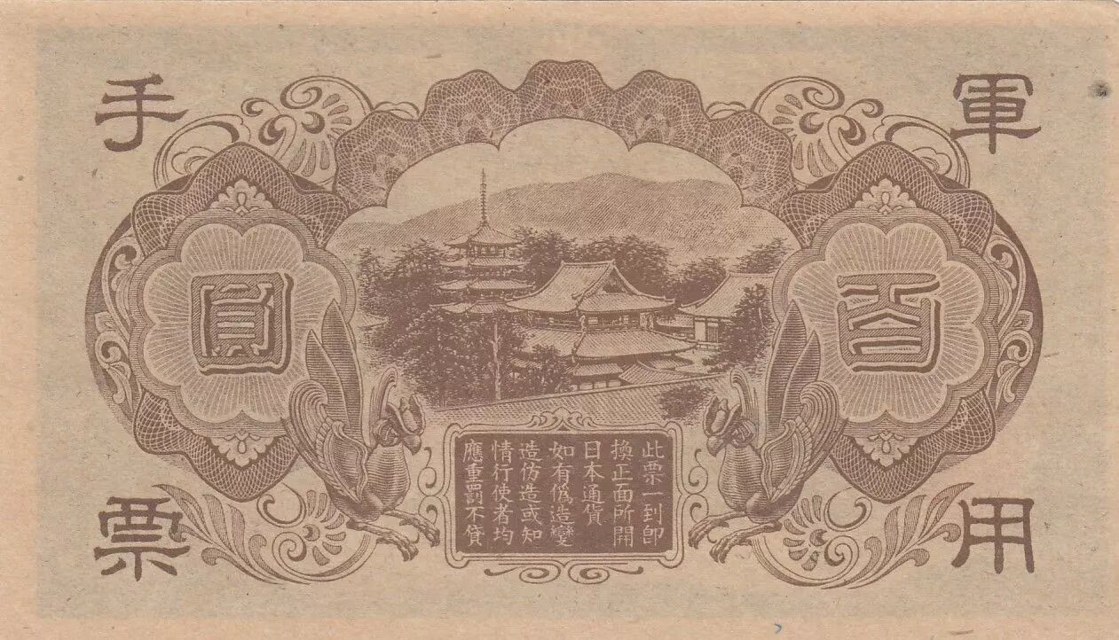 Accueil > Billets du Monde > Billets d'Asie > Chine > Chine 100 Yen Chine - Occupation Japonaise - Shotoku-taishi - Horyuji temple - ND (1945) - Bloc 1