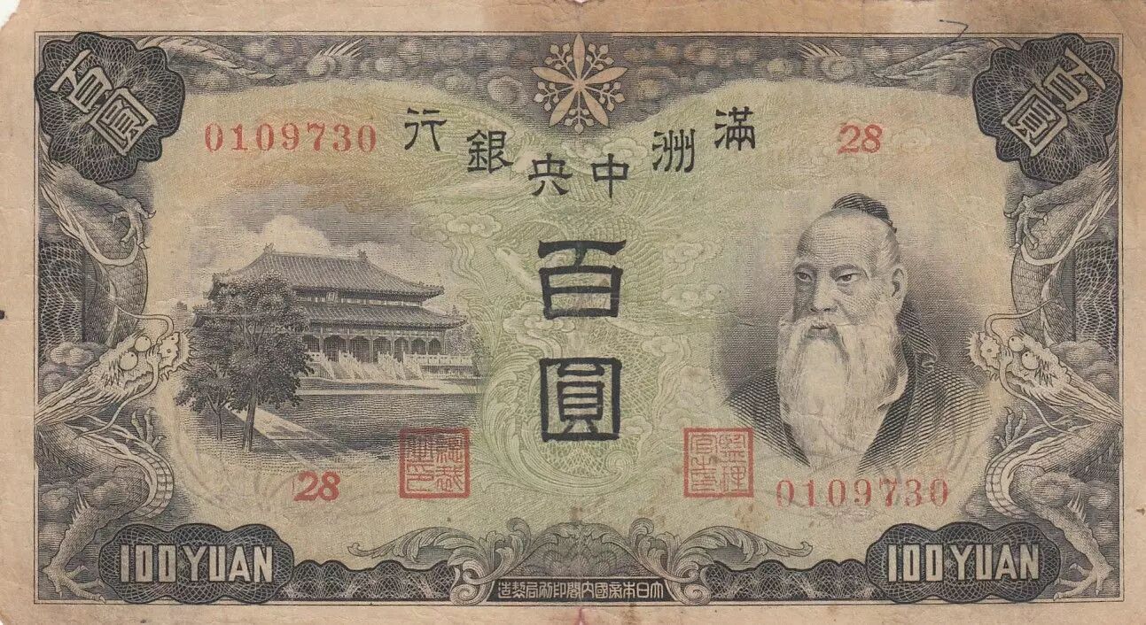 Billet Chine 100 Yuan - Confucius - Moutons - ND (1938) - Bloc 28 - PJ133b