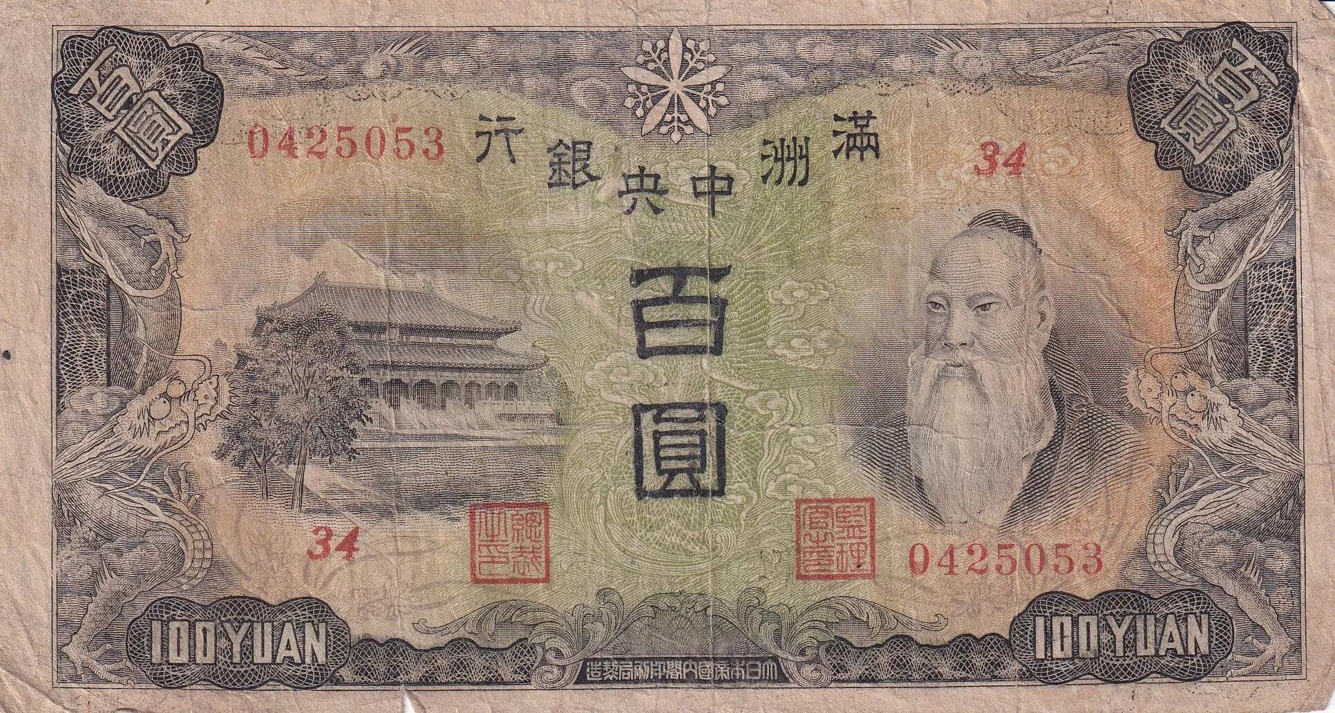 Billet Chine 100 Yuan - Confucius - Moutons - ND (1938) - Série 34 - PJ133b