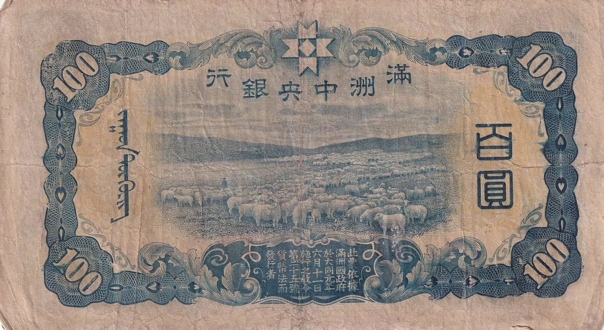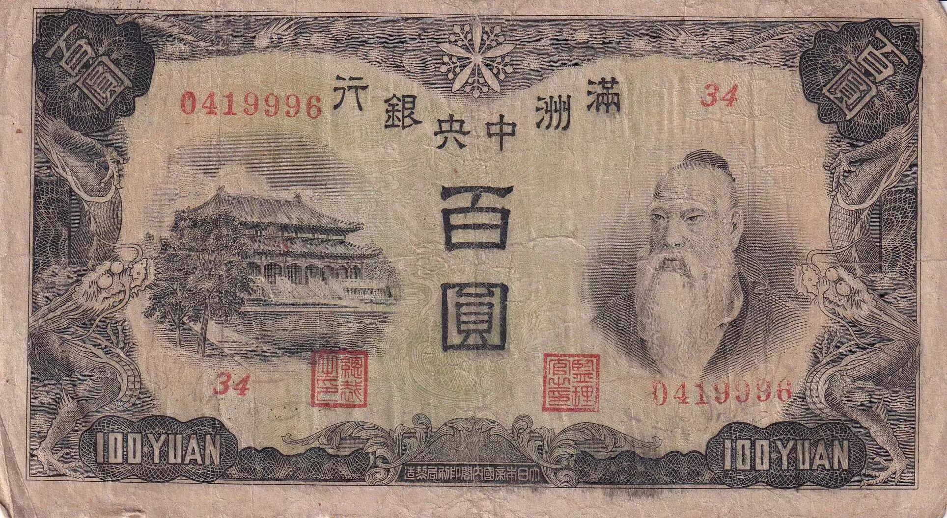 Billet Chine 100 Yuan - Confucius - Moutons - ND (1938) - Série 34 - PJ133b