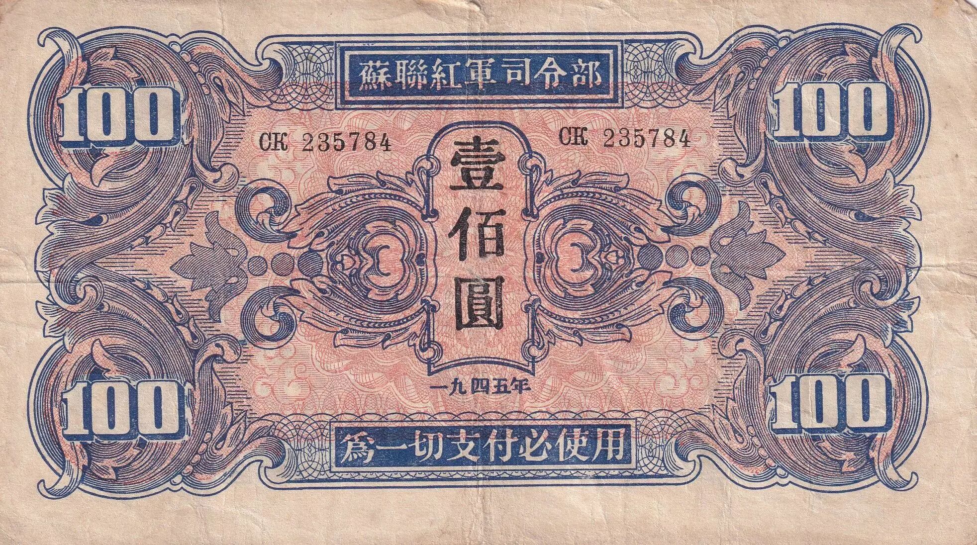 Accueil > Archivage > Chine 100 Yuan - Occupation soviétique - Mandchourie - 1945 - Série CK - P.M34