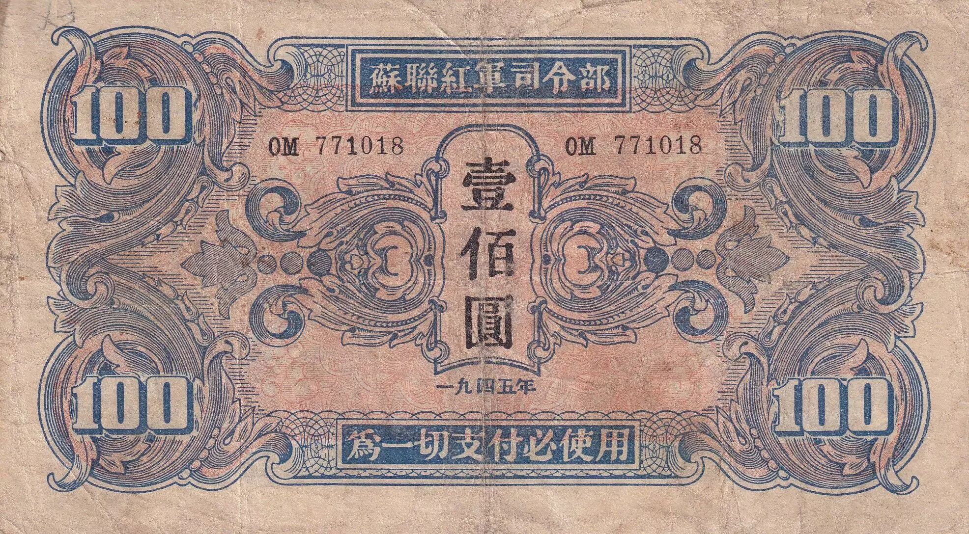 Accueil > Archivage > Chine 100 Yuan - Occupation soviétique - Mandchourie - 1945 - Série OM - P.M34