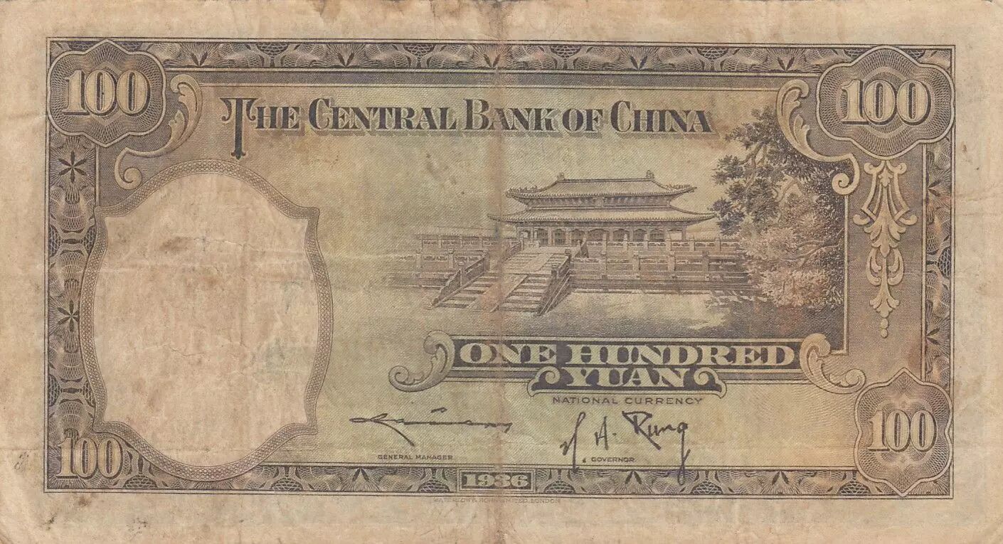 Accueil > Archivage > archivage-Billets du Monde > Chine 100 Yuan - Port. SYS - Arbres et Temple - Série BG - 1936