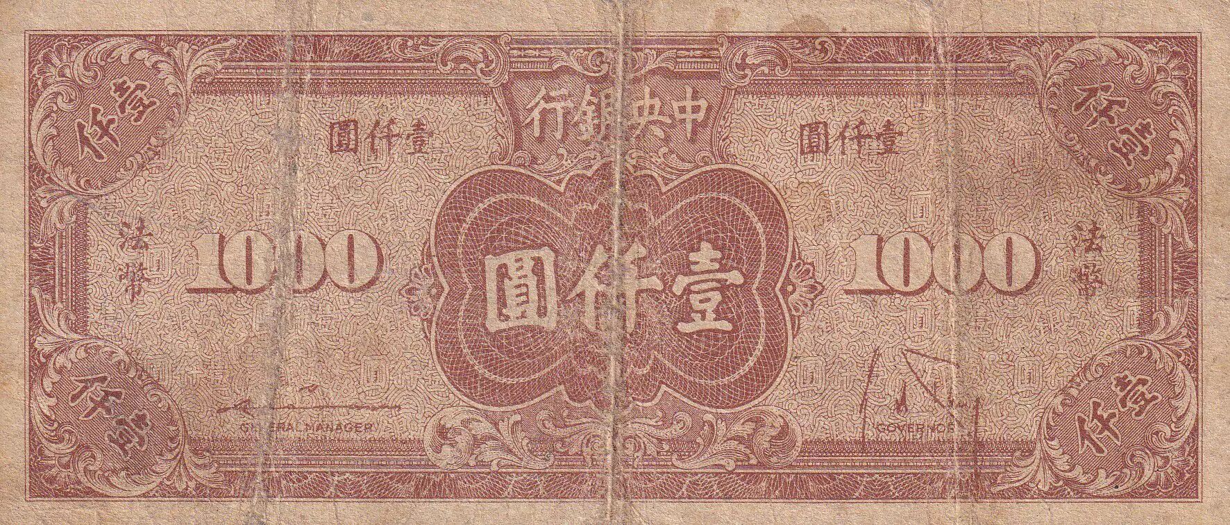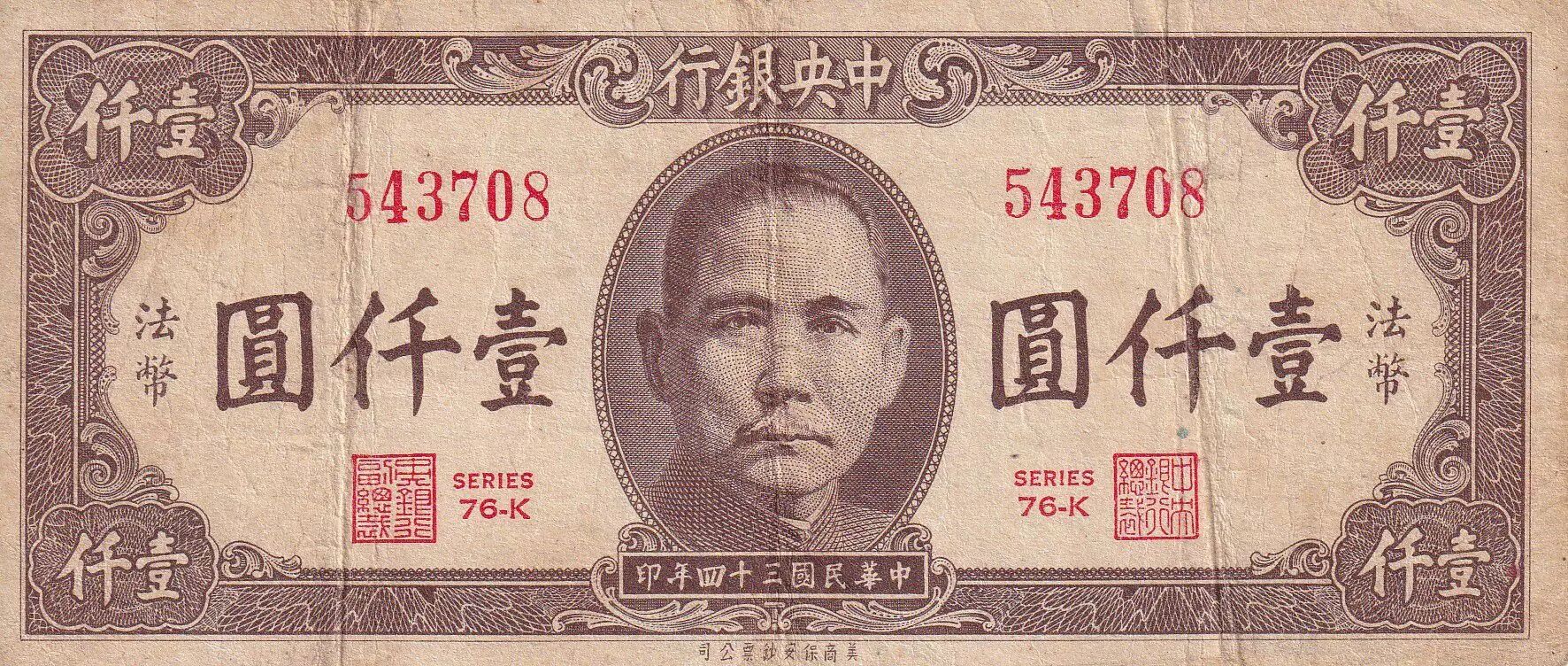 Accueil > Archivage > Chine 1000 Yuan - Sun Yat -Sen - 1945 - TB - P.289
