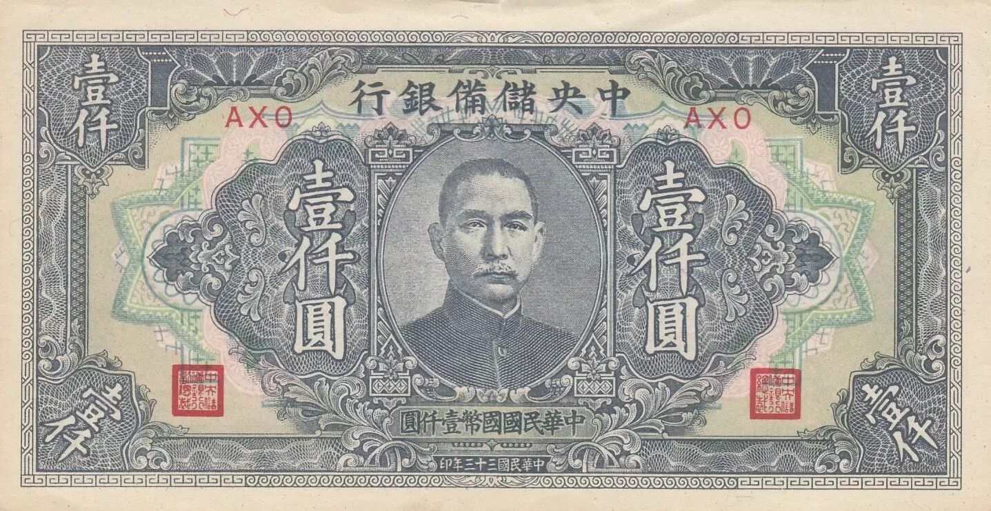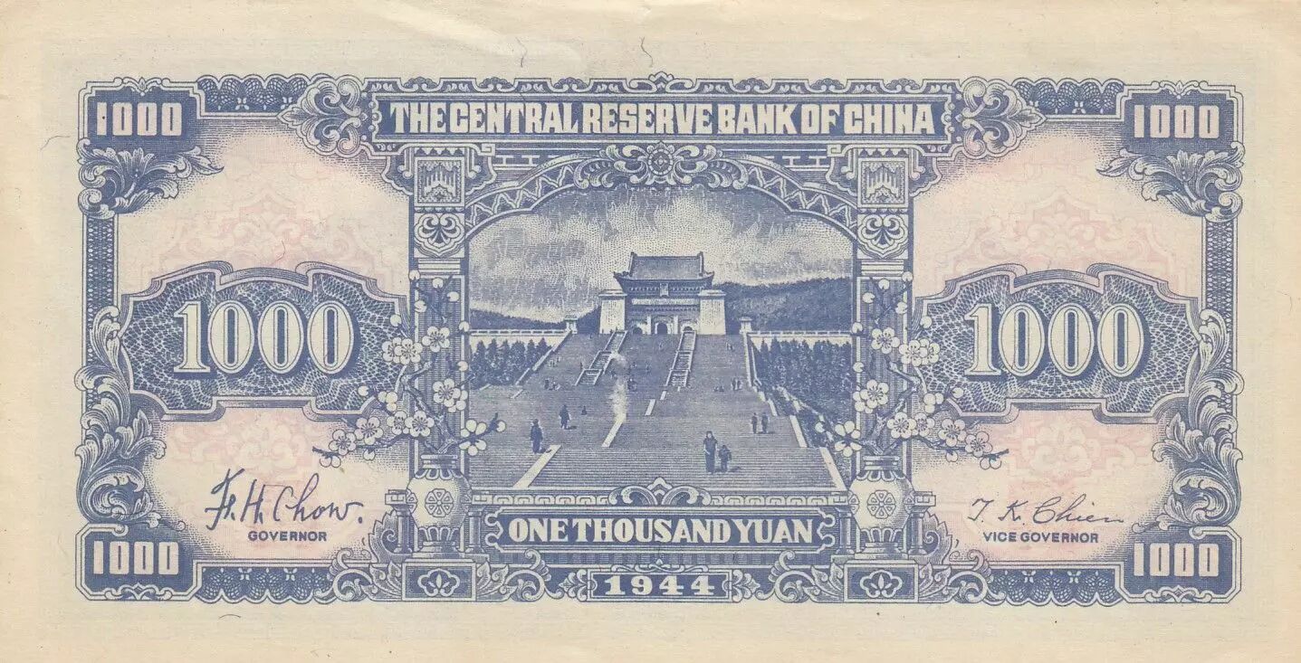 Billet Chine 1000 Yuan - Sun-Yat-Sen - Mausolée - Série AXO - 1944