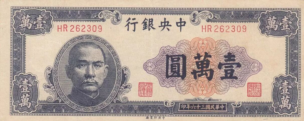 Billet Chine 10000 Yuan - Dr. Sun Yat-sen - Série HR - 1947