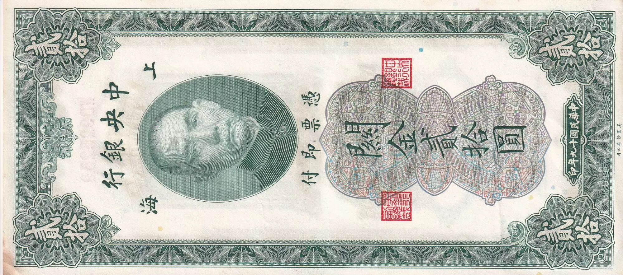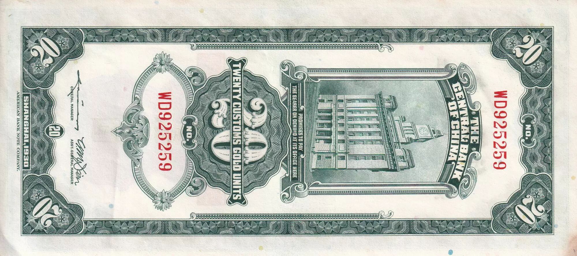 Billet Chine 20 Customs Gold Unit - Sun Yat-Sen - 1930 - SUP - P.328