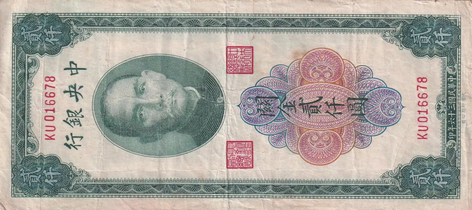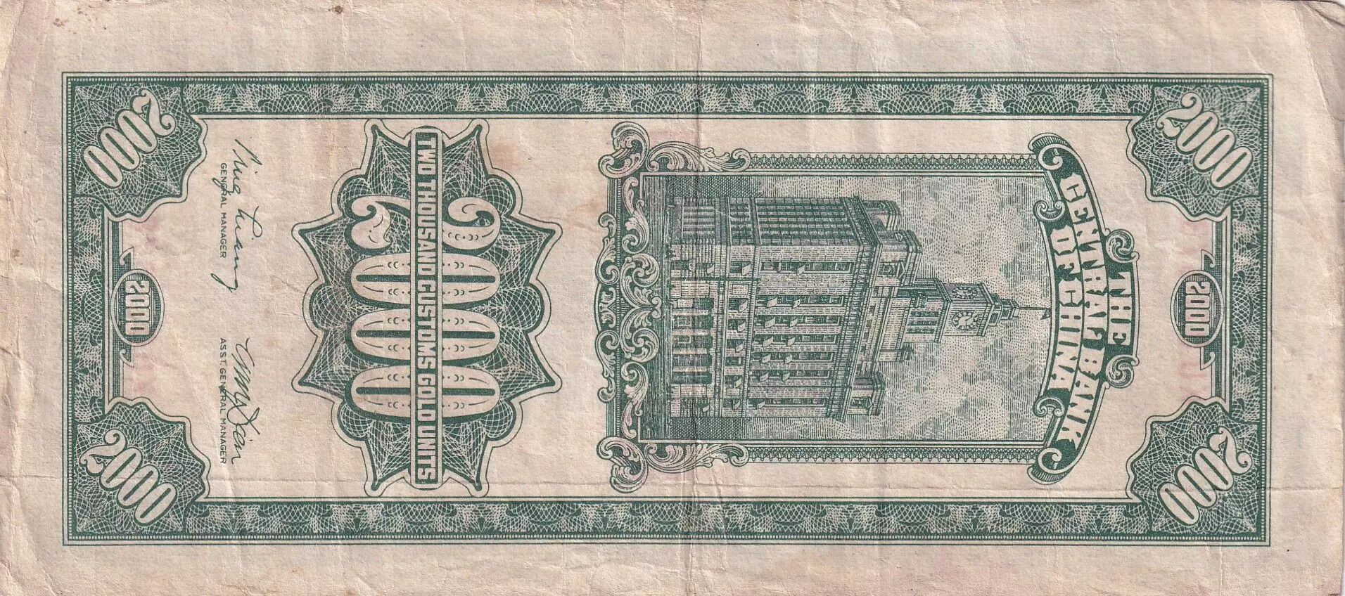Billet Chine 2000 Customs Gold Units - SYS - Banque Centrale - 1947