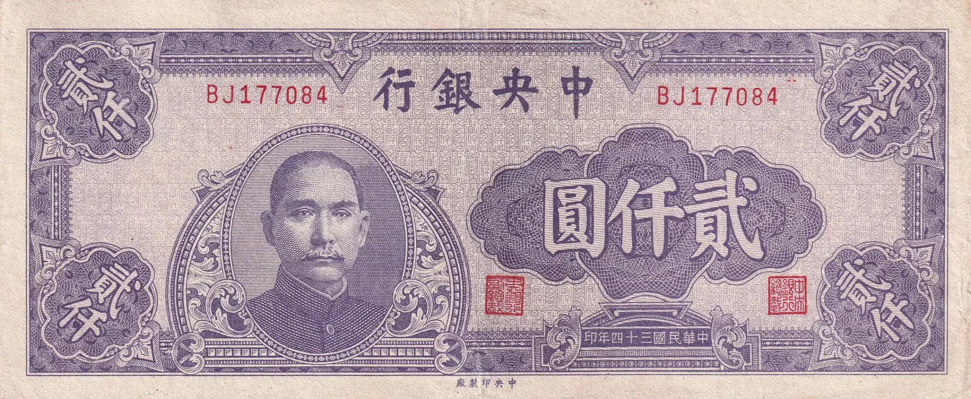 Billet Chine 2000 Yuan - Portrait SYS - 1945 - Série BJ - P.301a