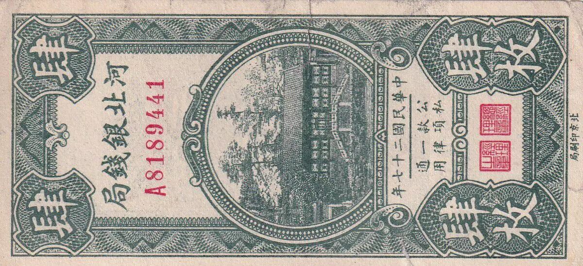 Accueil > Archivage > archivage-Billets du Monde > Chine 4 Copper - Ho Pei Metropolitan Bank - 1938 - P.S1710J