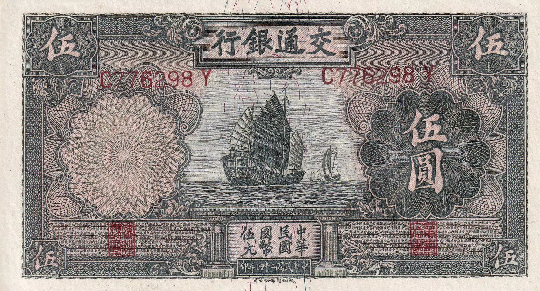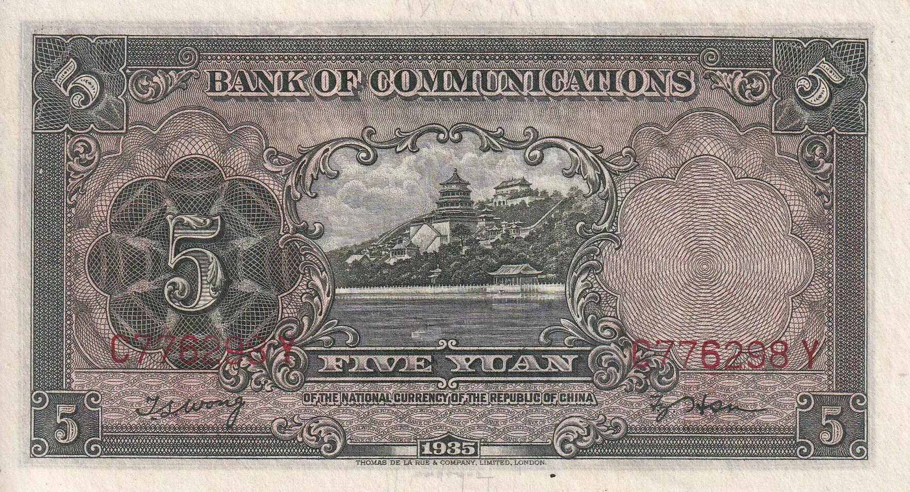 Accueil > Archivage > Chine 5 Yuan - Bateau - Palais - 1935 - P.NEUF - P.154a