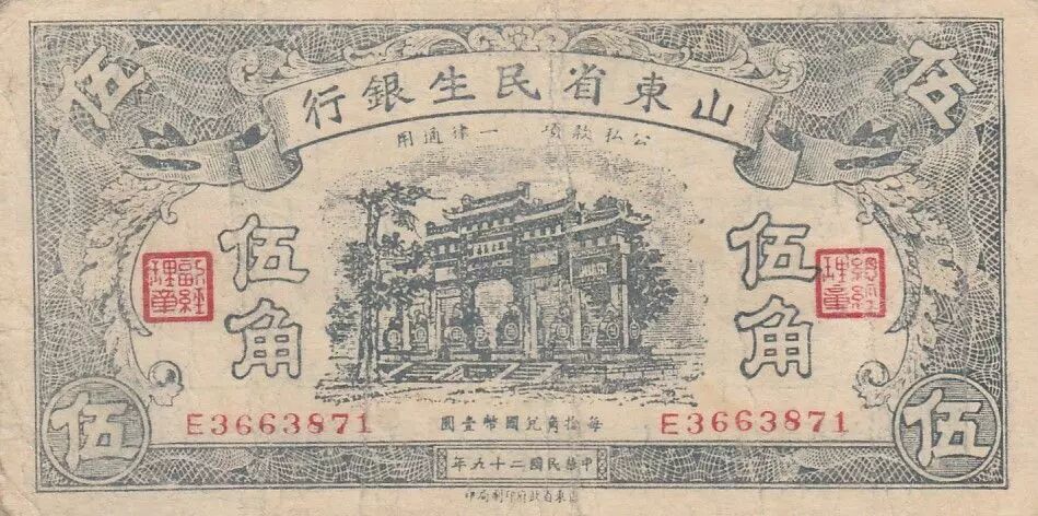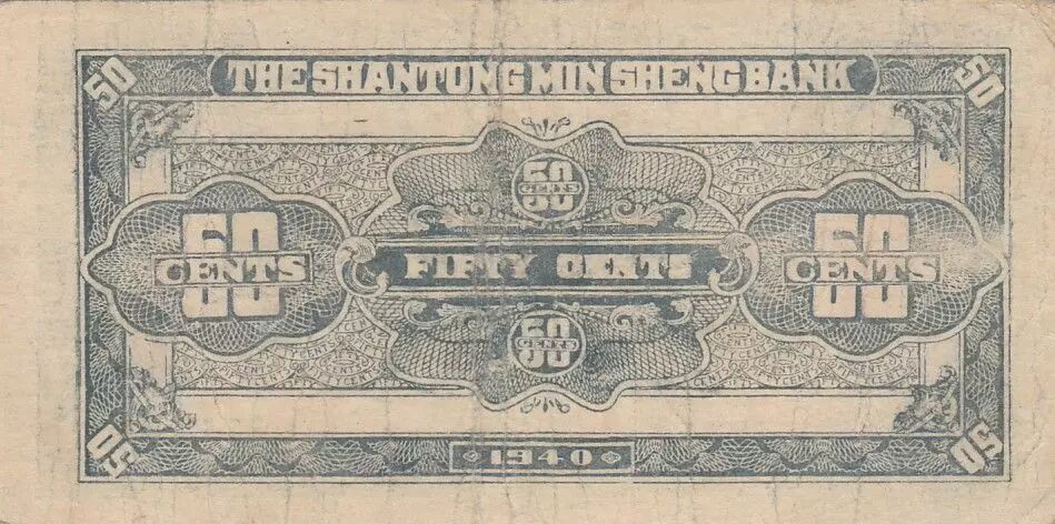Billet Chine 50 Cents - Shantung Min Sheng Bank - Série E36 - 1940
