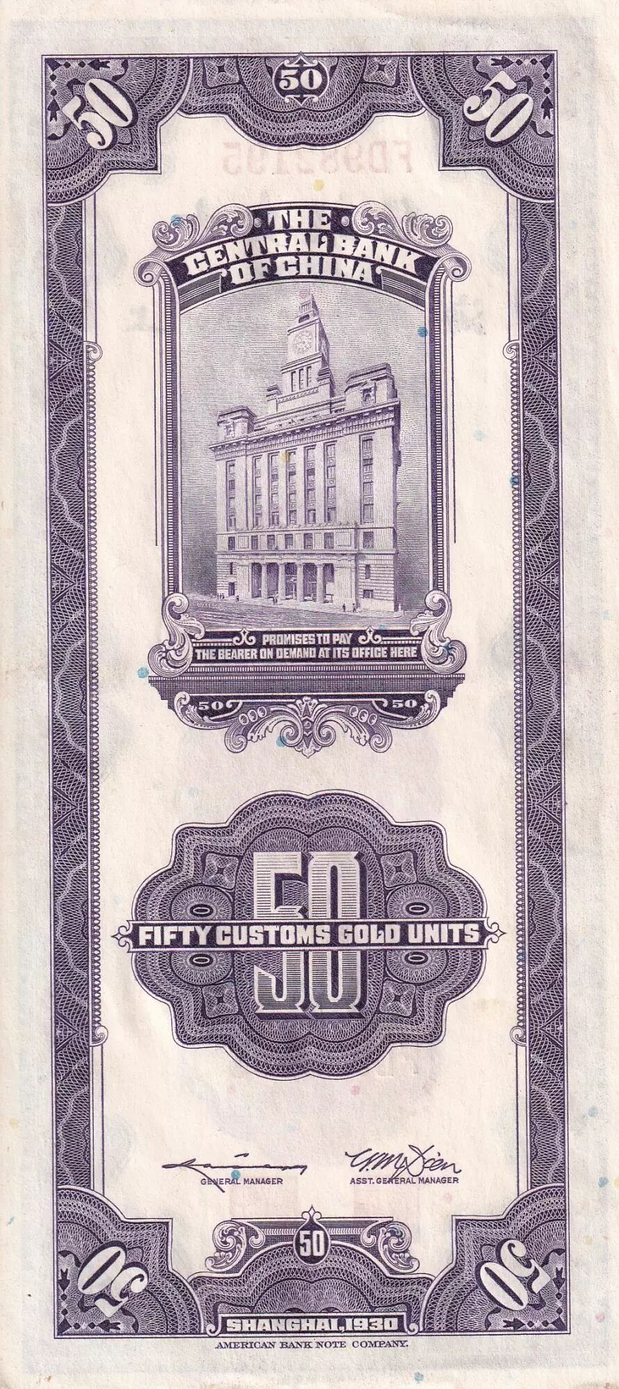 Billet Chine 50 Customs Gold Unit - Sun Yat-Sen - 1930 - SUP - P.329