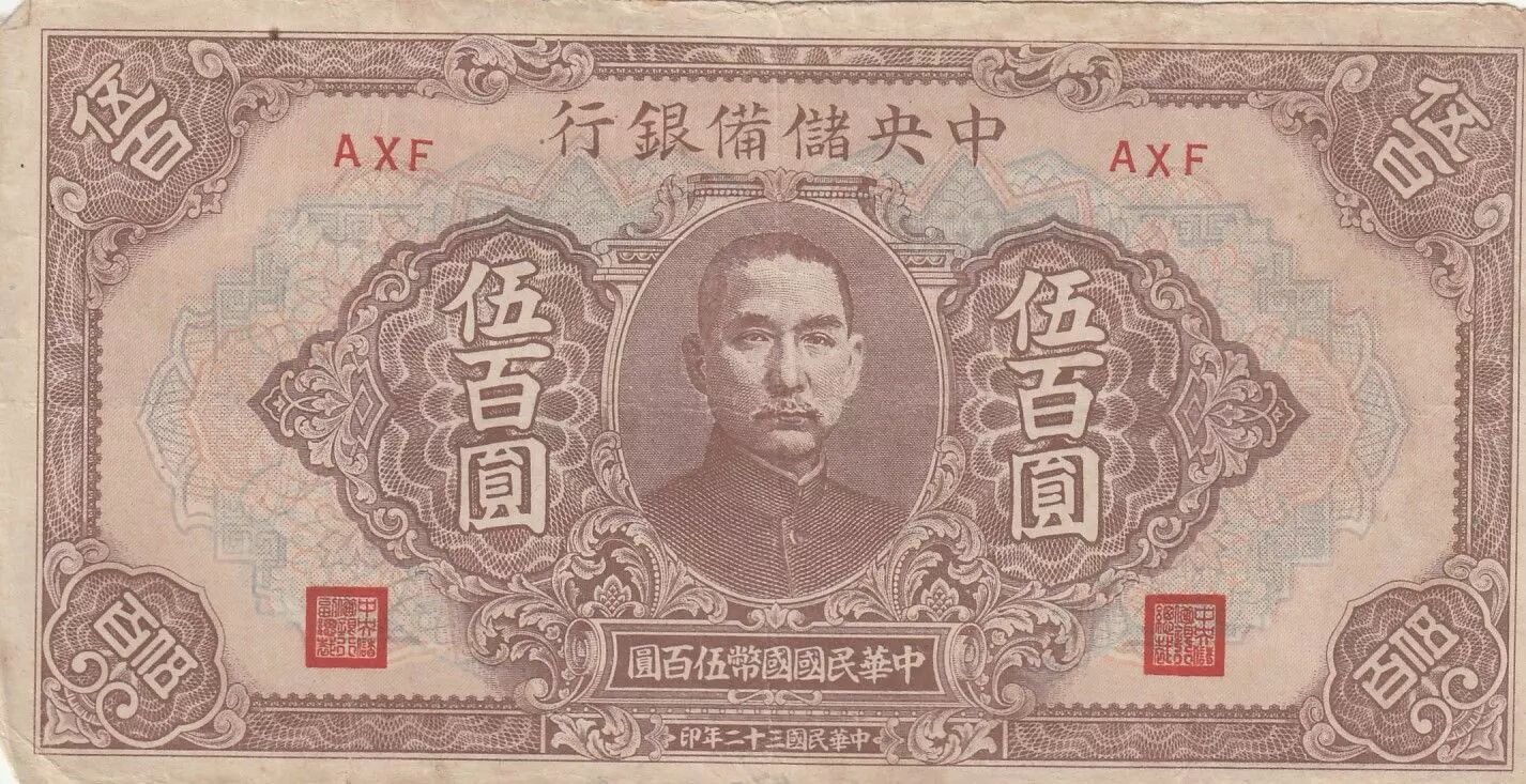 Billet Chine 500 Yuan - Dr. Sun Yat-sen - Série AXF - 1943
