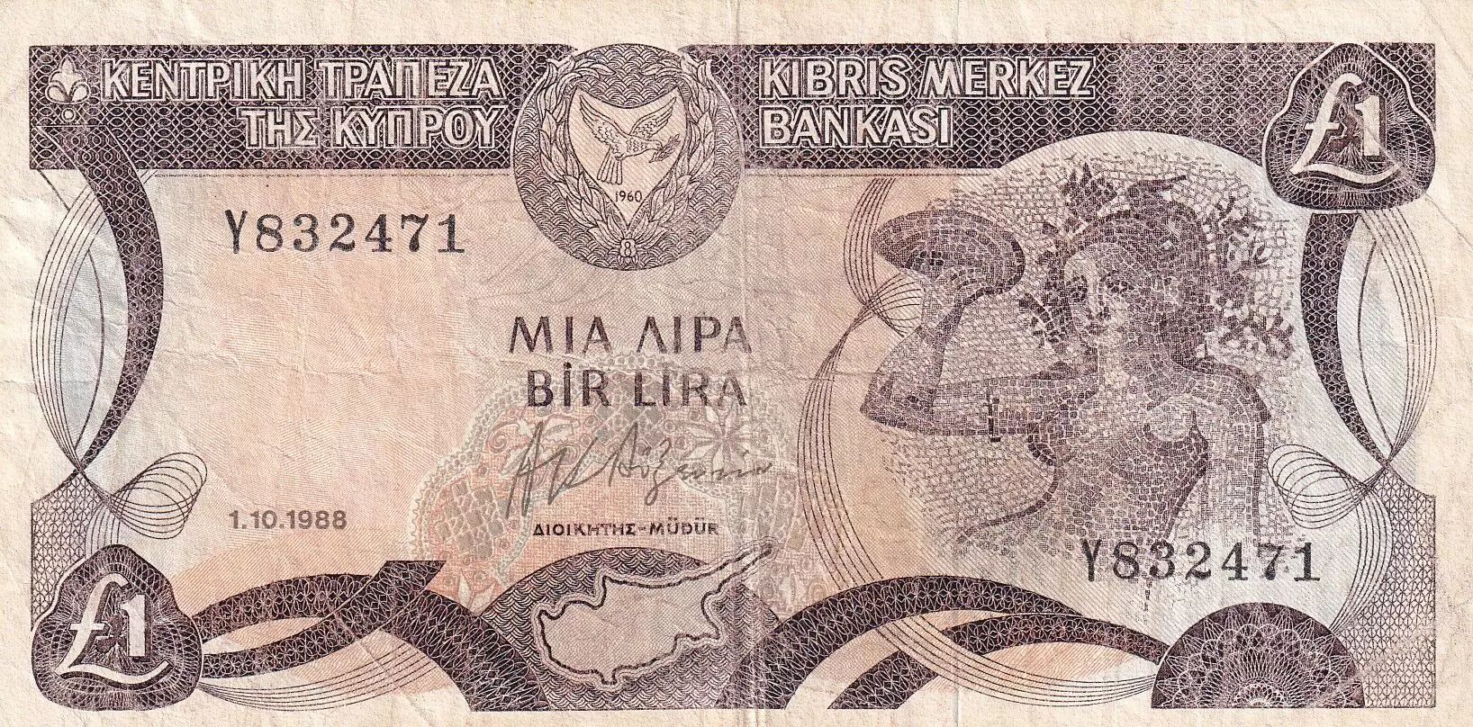 Billet Chypre 1 Pound - Nymphe Acme - 1988 - Série Y - P.53a