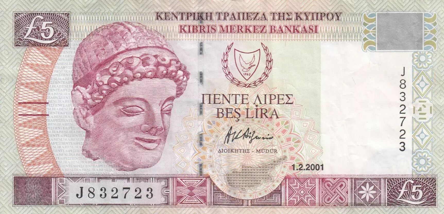 Billet Chypre 5 pounds - Tête, Homme - 2001 - J832723