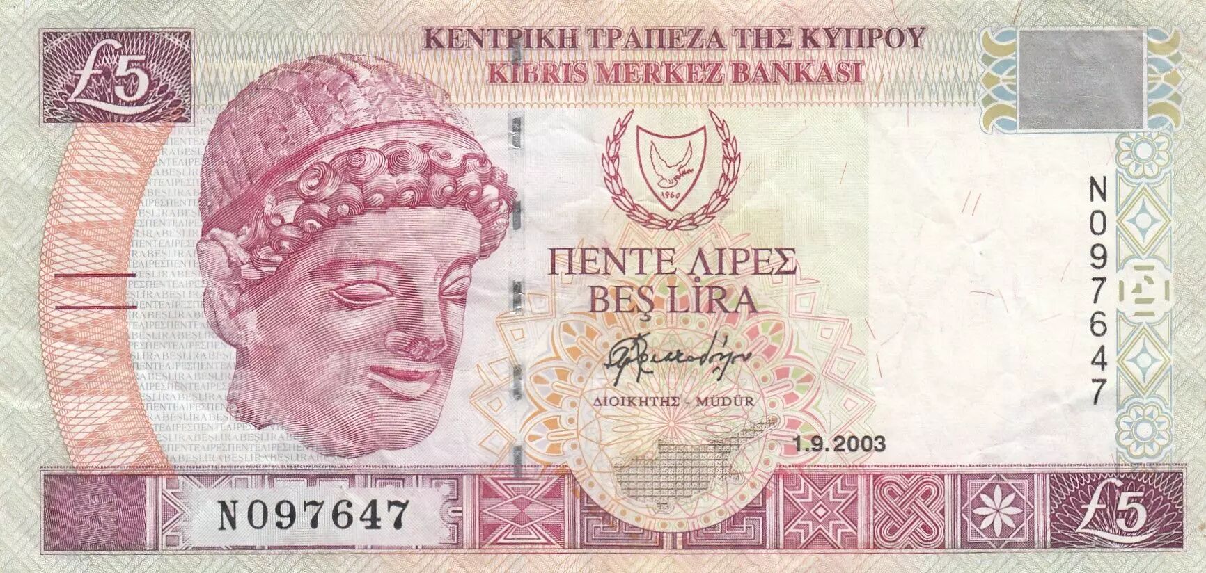 Billet Chypre 5 pounds - Tête, Homme - 2003 - N097647