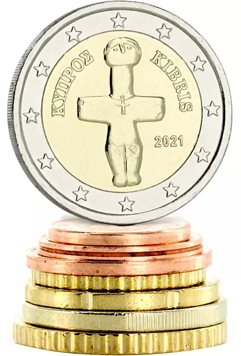 Les pièces en euros de Chypre ont trois dessins différents :- le mouflon sur les pièces de 1 2 et 5 cents ;- le kyrenia" sur les pièces de 10 20 et 50 cents ;- l'idole de Pomos sur les pièces de 1 et 2 euros.