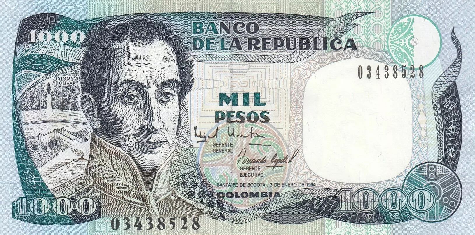 The 1000 Peso banknote from 1994 is issued by the issuing institute of Colombia, which is responsible for the production and distribution of the national currency. The year of issue, 1994, indicates the period in which this particular banknote was put into circulation.