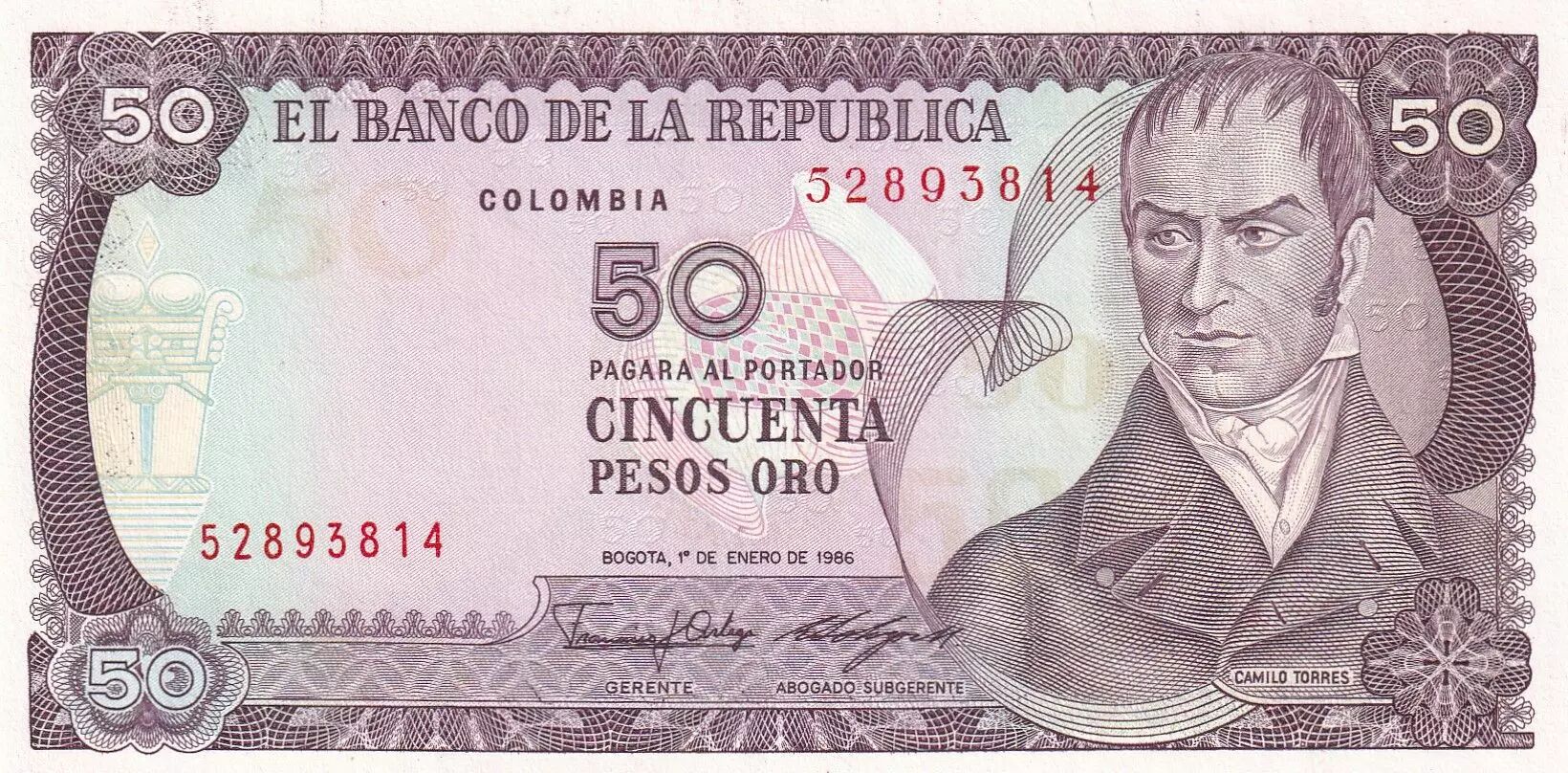 Banknote Colombia 50 Pesos oro, Camillo Torres - Orchids - 01-01-1986