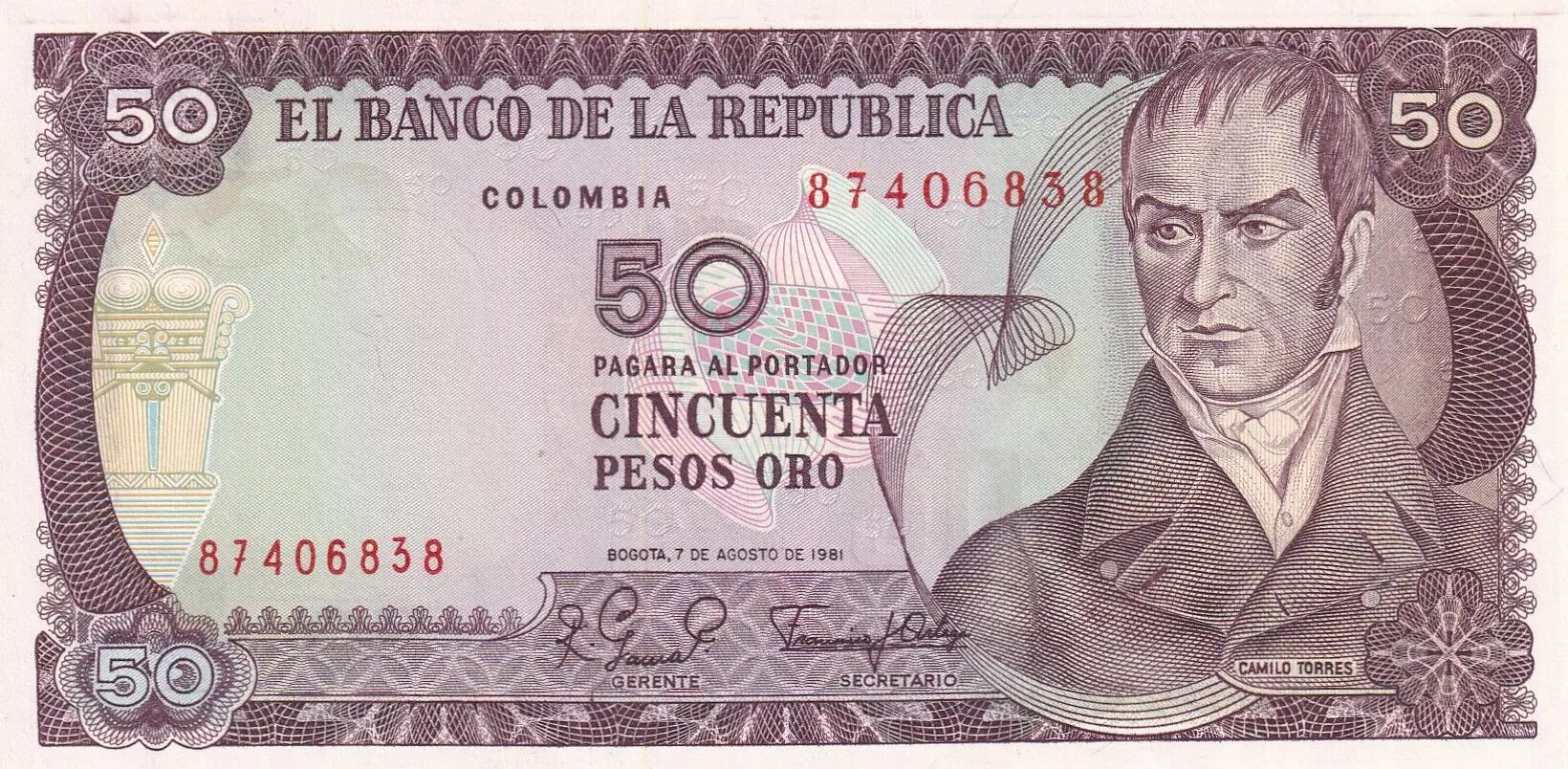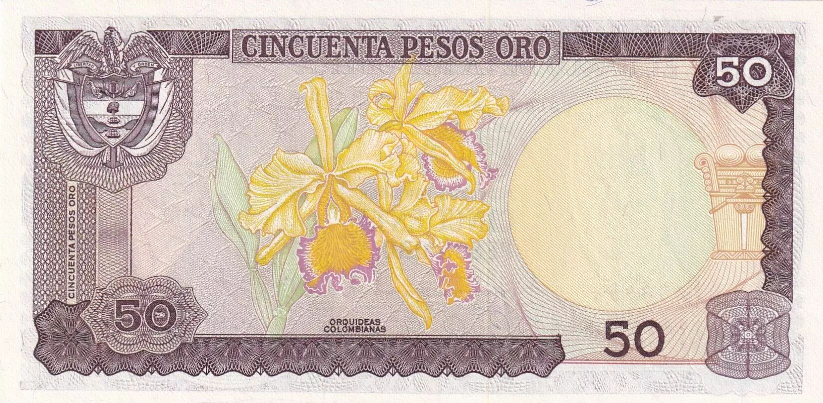 Banknote Colombia 50 Pesos oro, Camillo Torres - Orchids - 07-08-1981