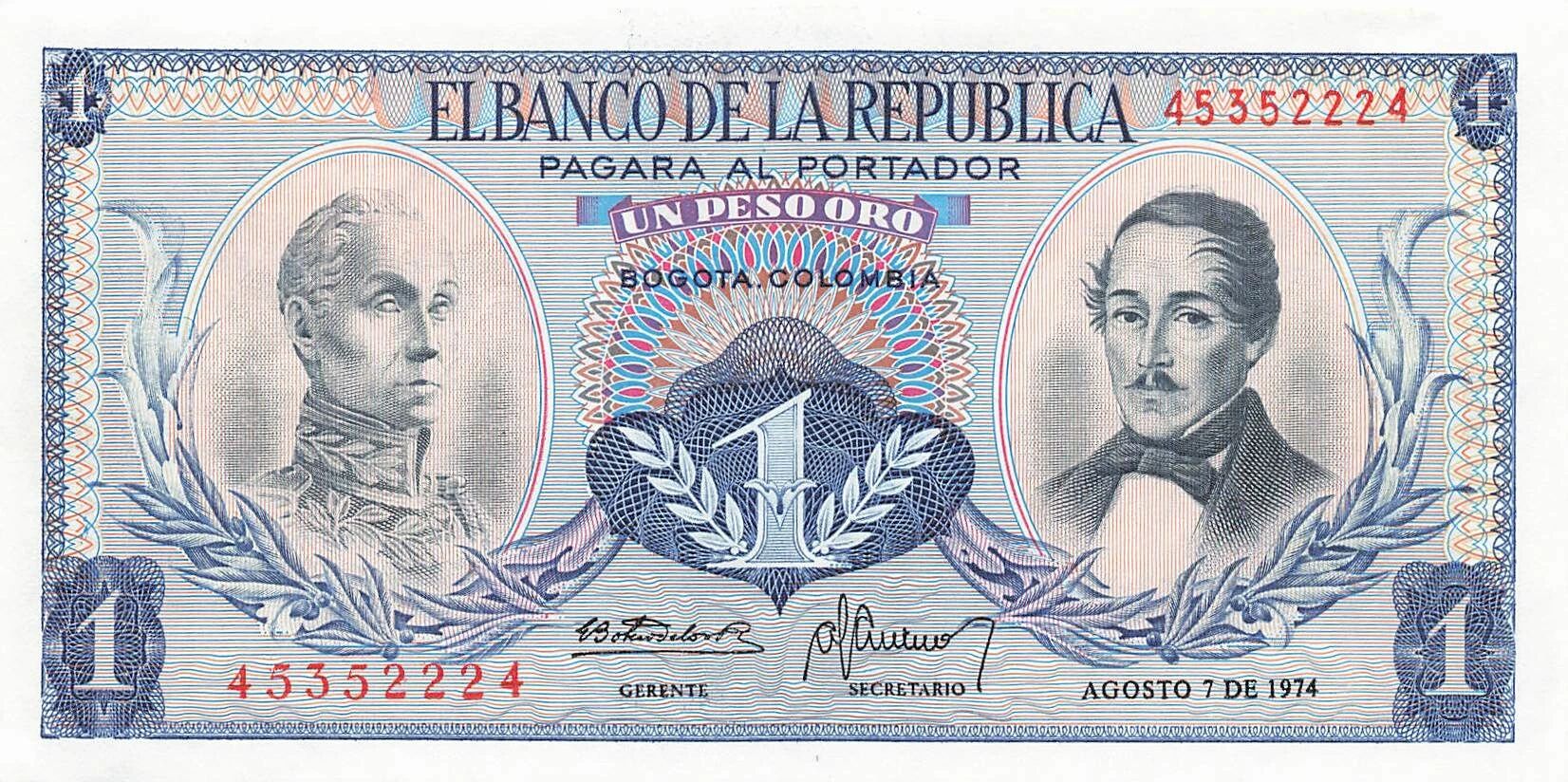 Billet Colombie 1 Peso Oro - 07-08-1974 - P.404e