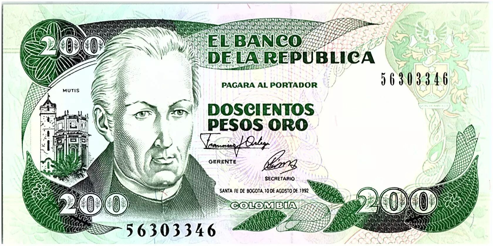 Billet Colombie 200 Pesos oro, J. C. Mutis - Observatoire national - 1992