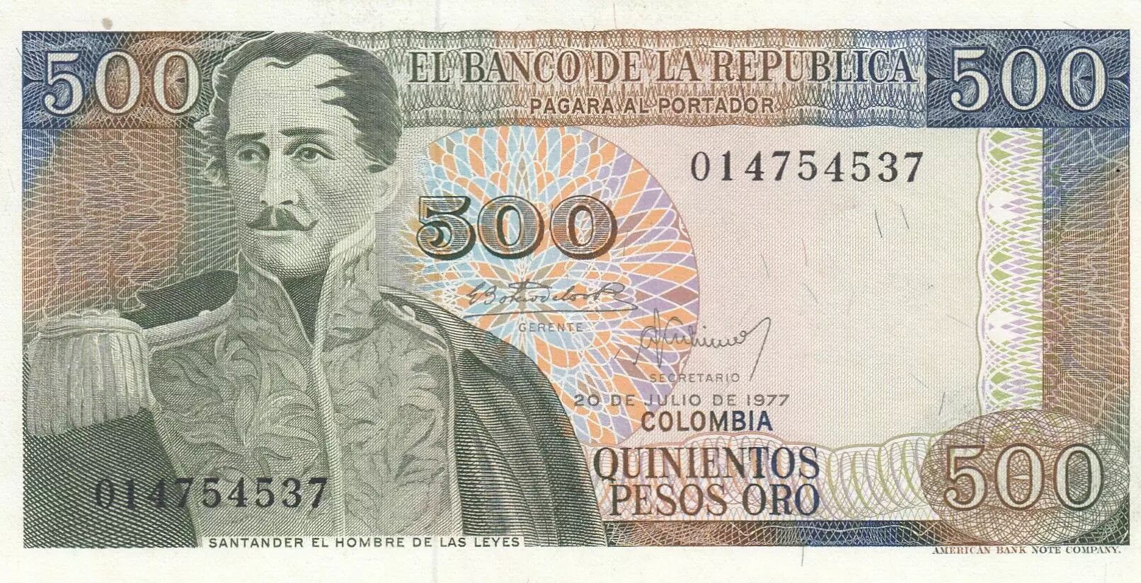 Accueil > Archivage > archivage-Billets du Monde > Colombie 500 Pesos oro - Gal Santander - Las Salinas - 20-07-1977 - Série 014754537
