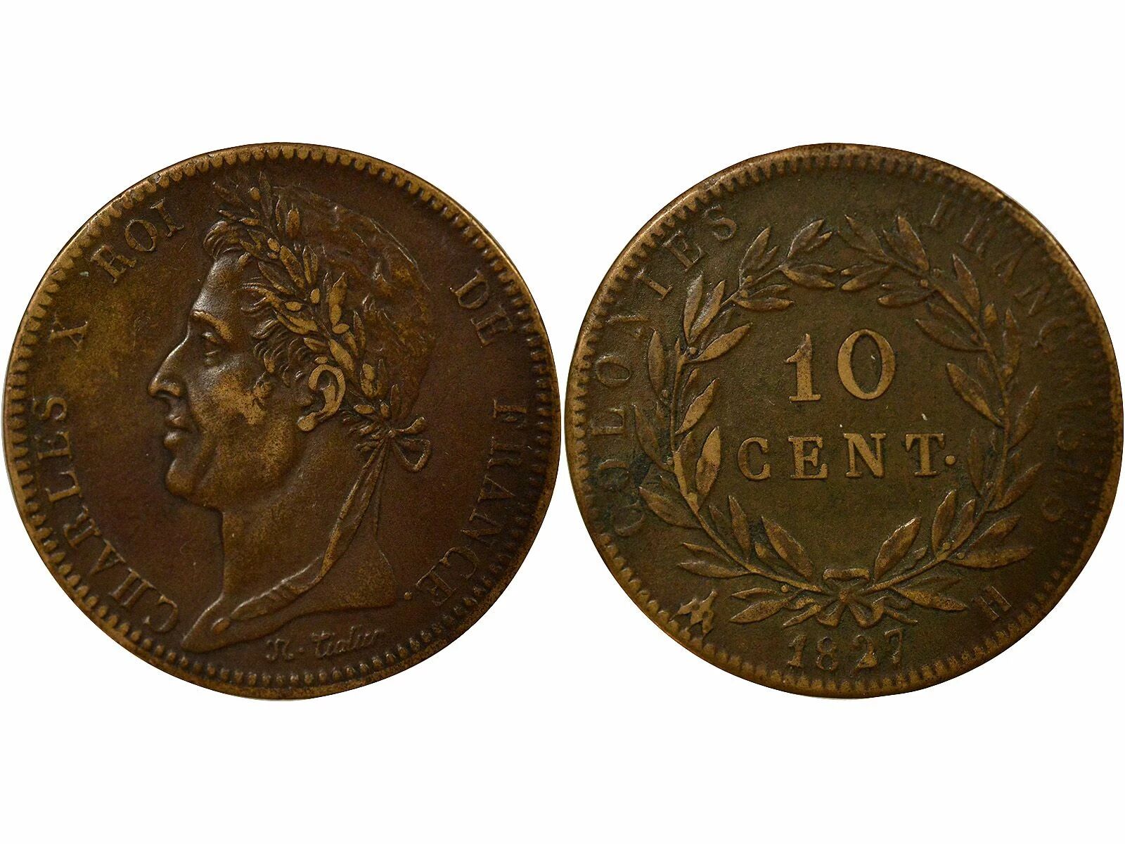 Pièce Colonies Françaises Martinique & Guadeloupe, Charles X - 10 Centimes 1827 H La Rochelle