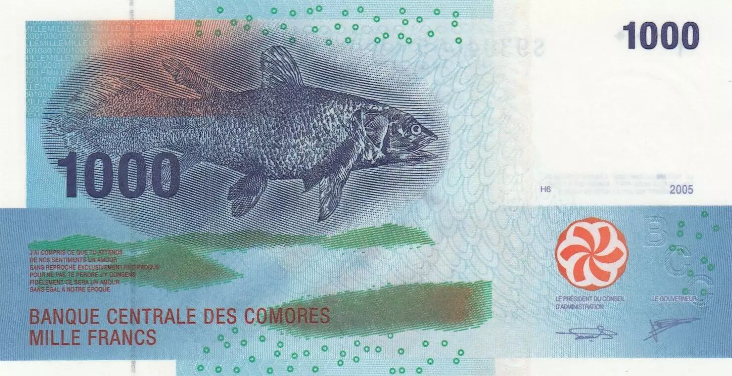 Home > > Comoros 1000 Francs Fish - Canoe 2005
