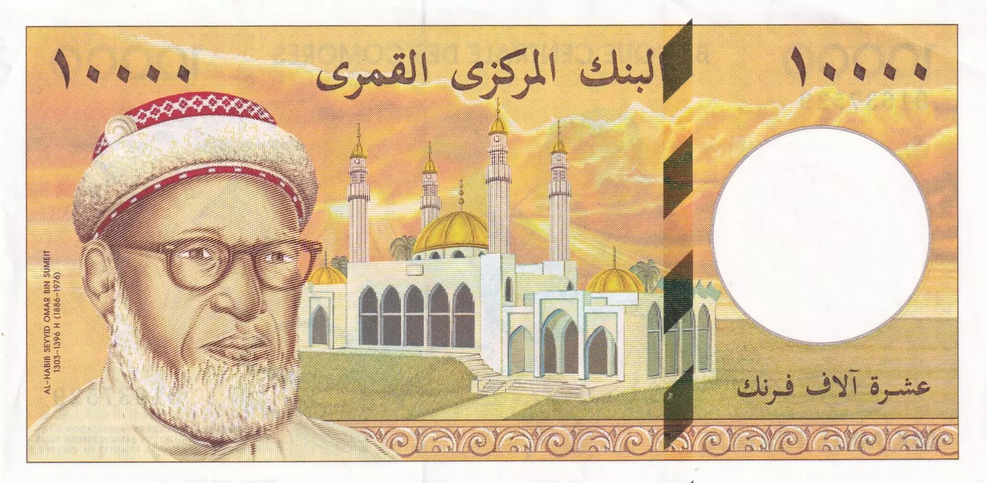 Home > World Banknotes > African Banknotes > Comoros > Comoros 10,000 Francs - Al-Habib Seyyid Omar Bin Sumeit - Mausoleum of Ahmed Abdallah Abderehmane - 1996