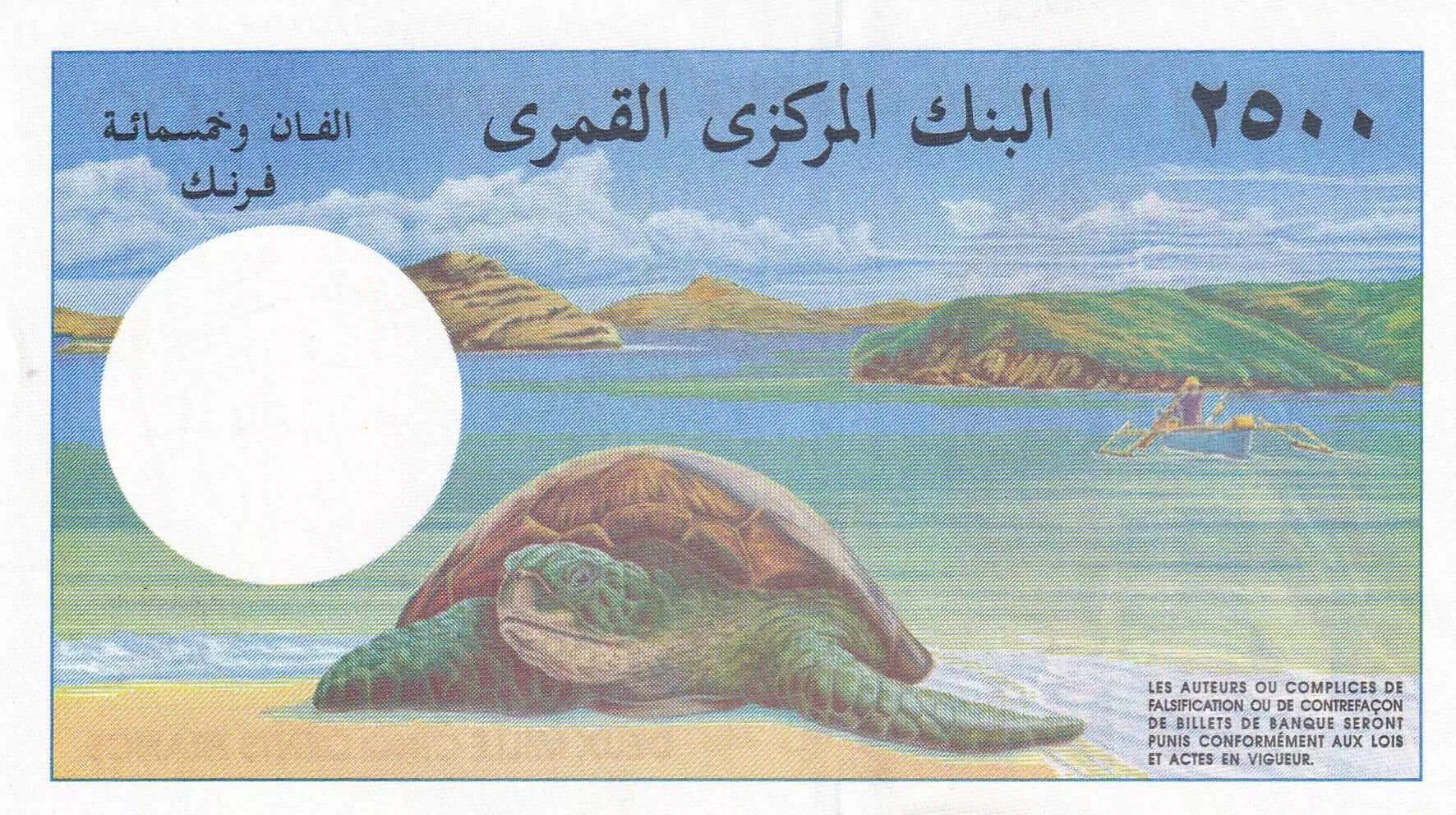 Banknote Comoros 2500 Francs Woman, Turtle - 1997