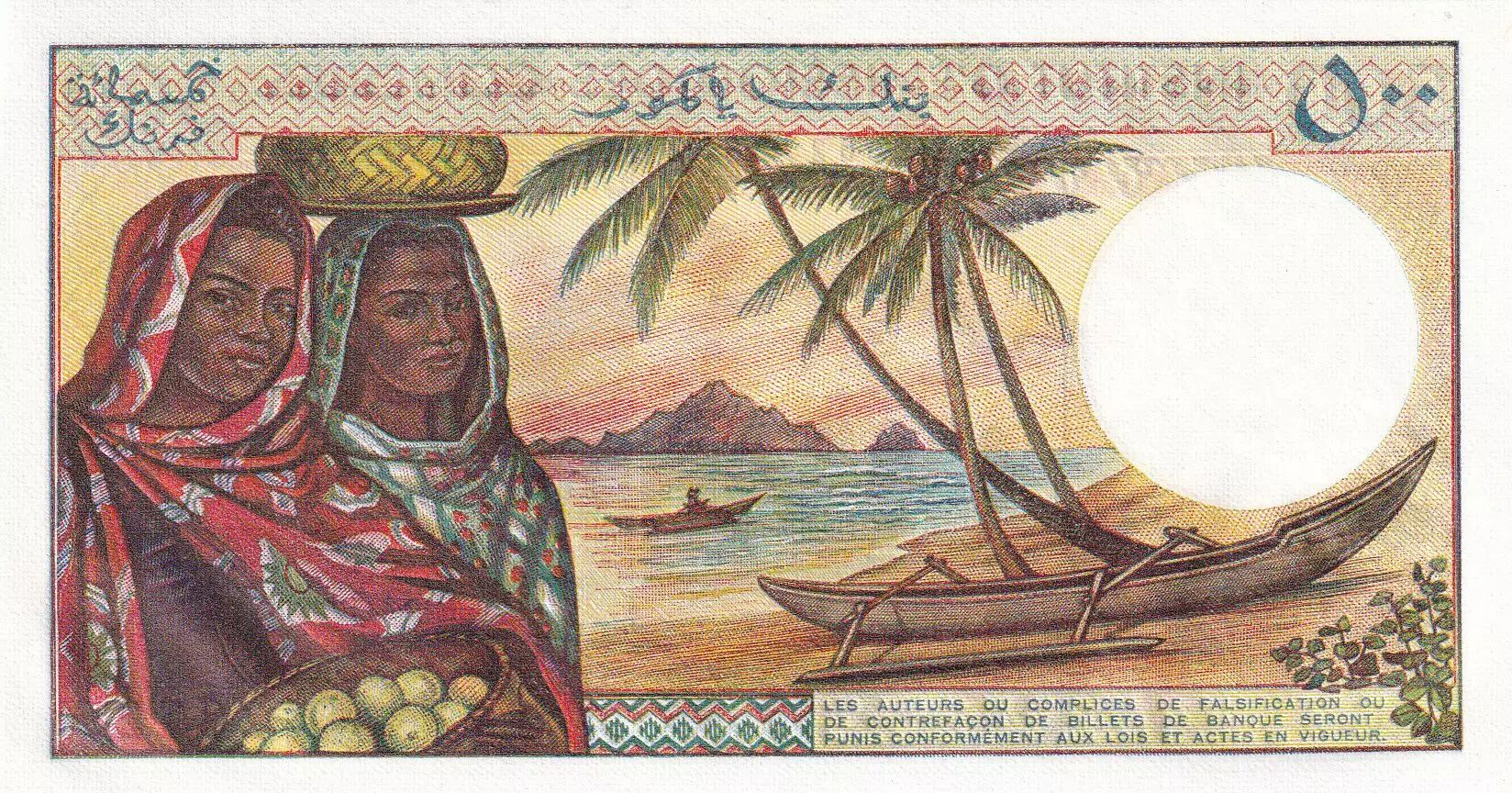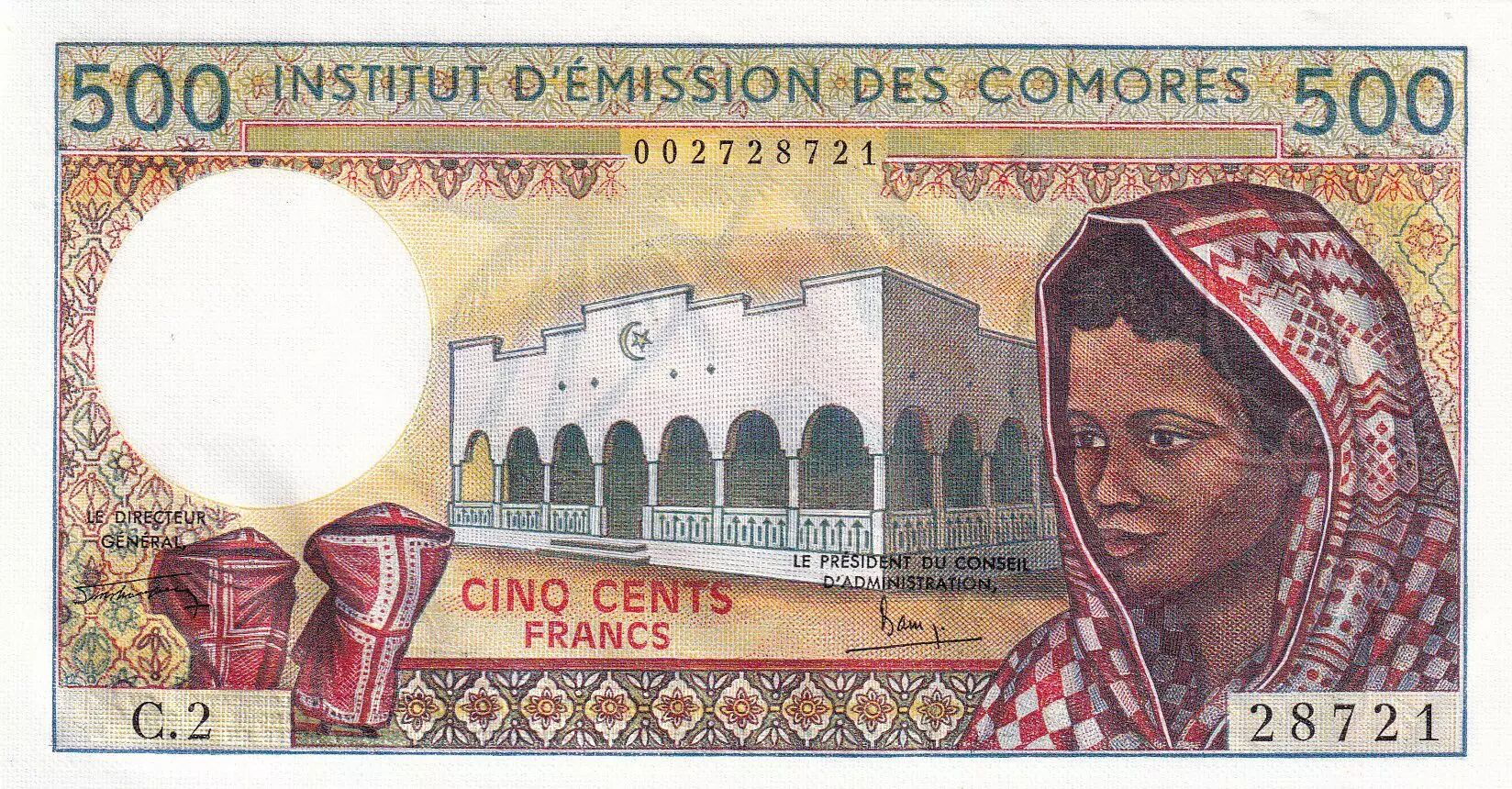 Banknote Comoros 500 Francs - Woman - Building - ND (1976) - Serial C.2 - P.7