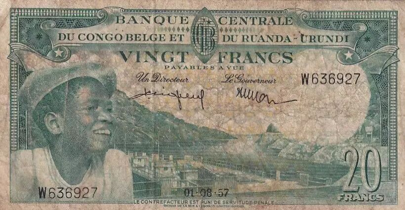 Accueil > Archivage > archivage-Billets du Monde > Congo Belge 20 Francs - Jeune Garçon - Barrage - 01-08-1957 - Série W 636927
