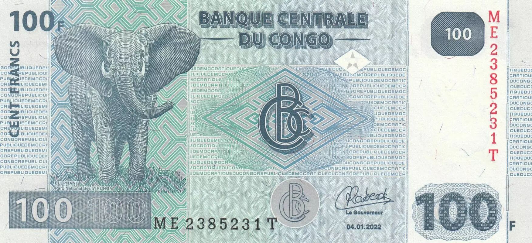 Billet Congo (RDC) 100 Francs - Eléphant - Barrage - 2022