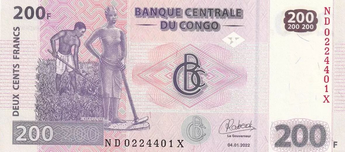 Billet Congo (RDC) 200 Francs - Agriculture - 04-01-2022 - Série ND