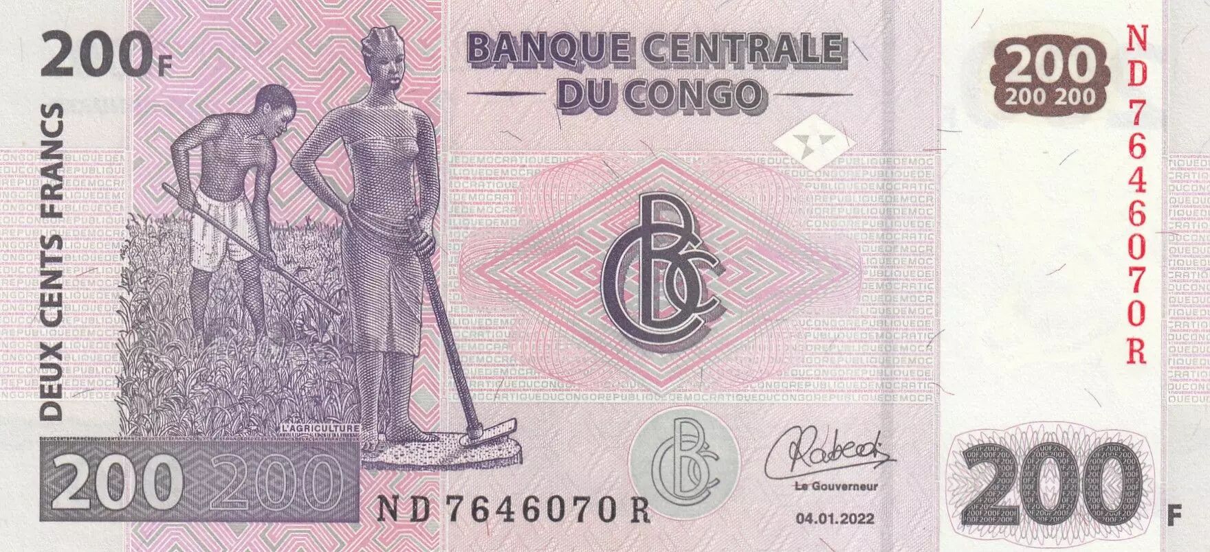 Banknote Congo (RDC) 200 Francs - Agriculture - 2022 - Serial ND - P.99b