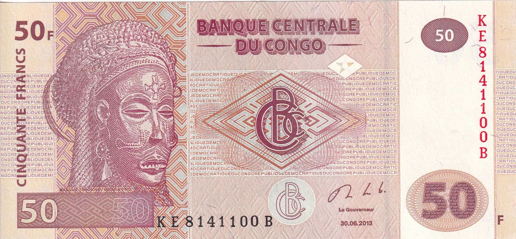 Accueil > Billets du Monde > Billets d'Afrique > Congo (RDC) > Congo (RDC) 50 Francs - Masque, Village - 2013 - P.97A