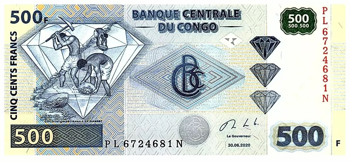 Banknote Congo (RDC) 500 Francs - Diamond and mining - 2020 -P.NEW