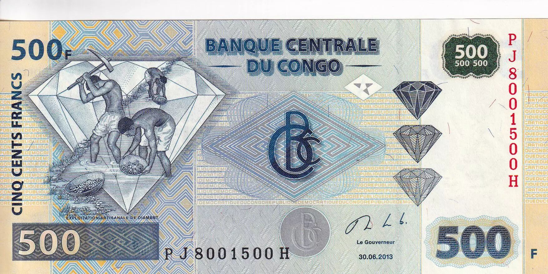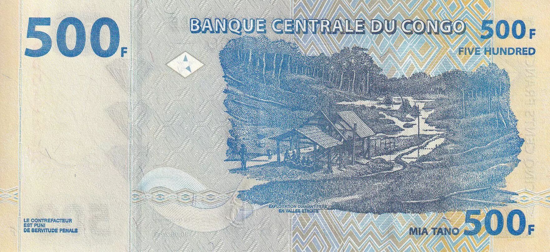 Banknote Congo (RDC) 500 Francs - Diamond and mining - G&D - 2013 -P.NEW