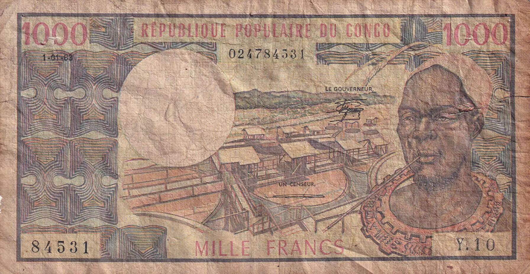 Home > > Congo Republic 1000 Francs - Makoko I - Pointe Noire - 1983 - Série Y.10 - VG - P.3e