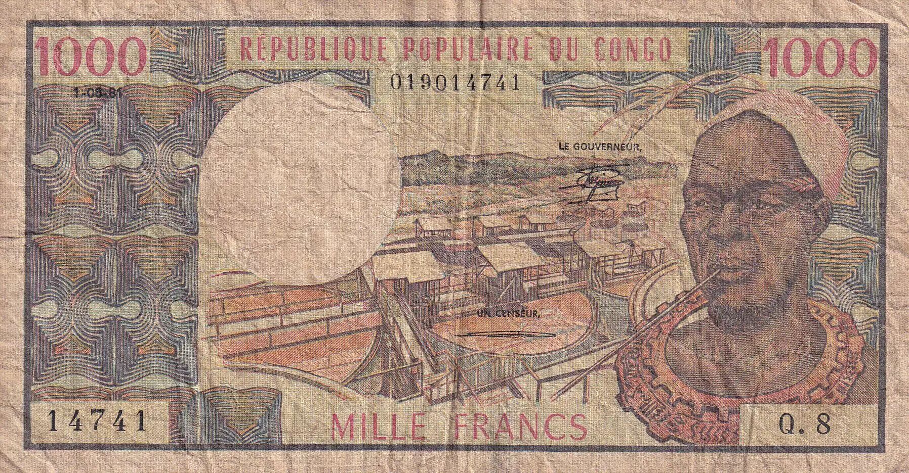 Accueil > Archivage > Congo (République du) 1000 Francs - Makoko 1er - Pointe Noire - 1981 - Série Q.8 - B+ - P.3e