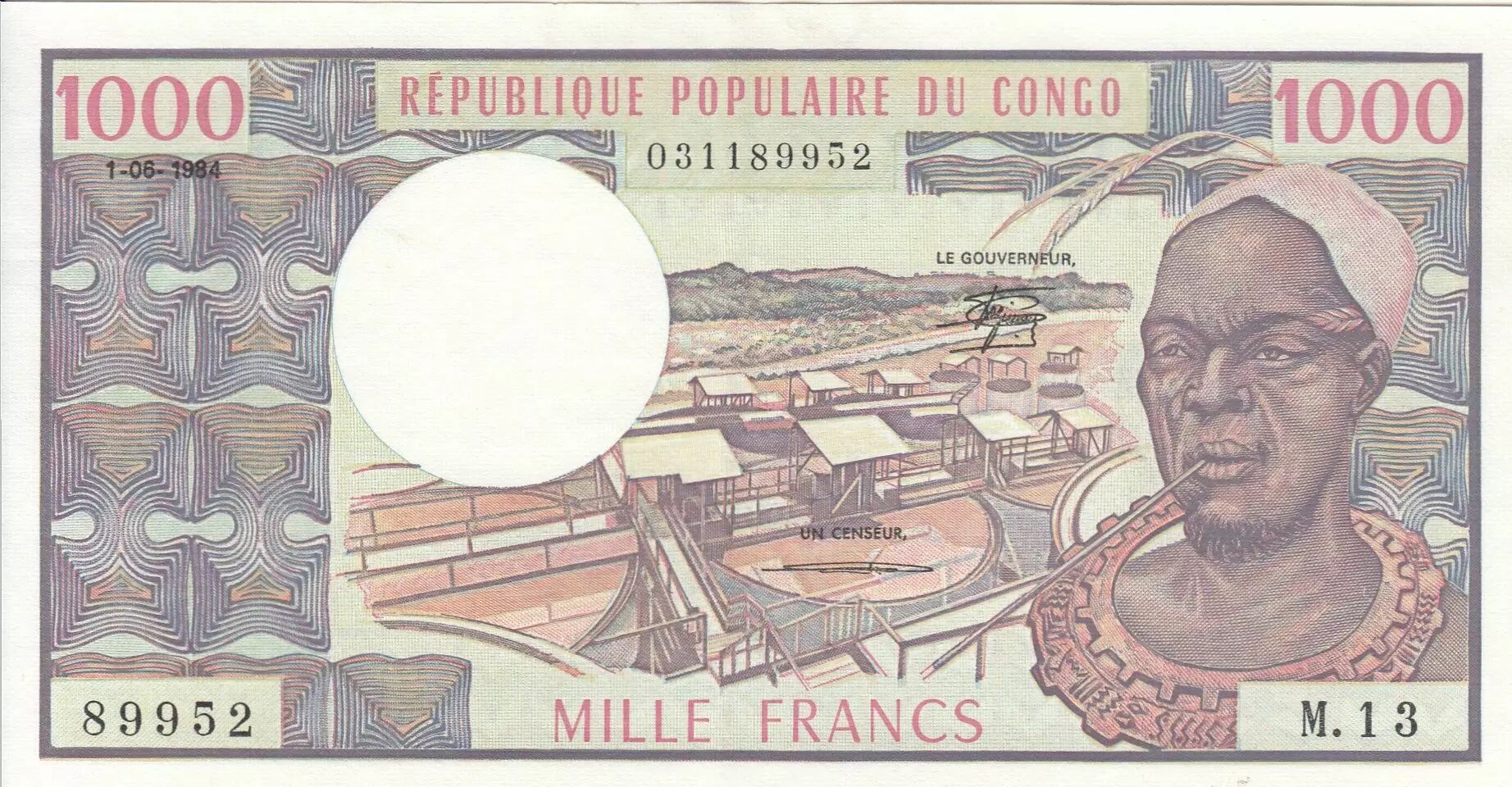 Billet Congo (République du) 1000 Francs - Makoko 1er - Pointe Noire - 1984 - Série M.13