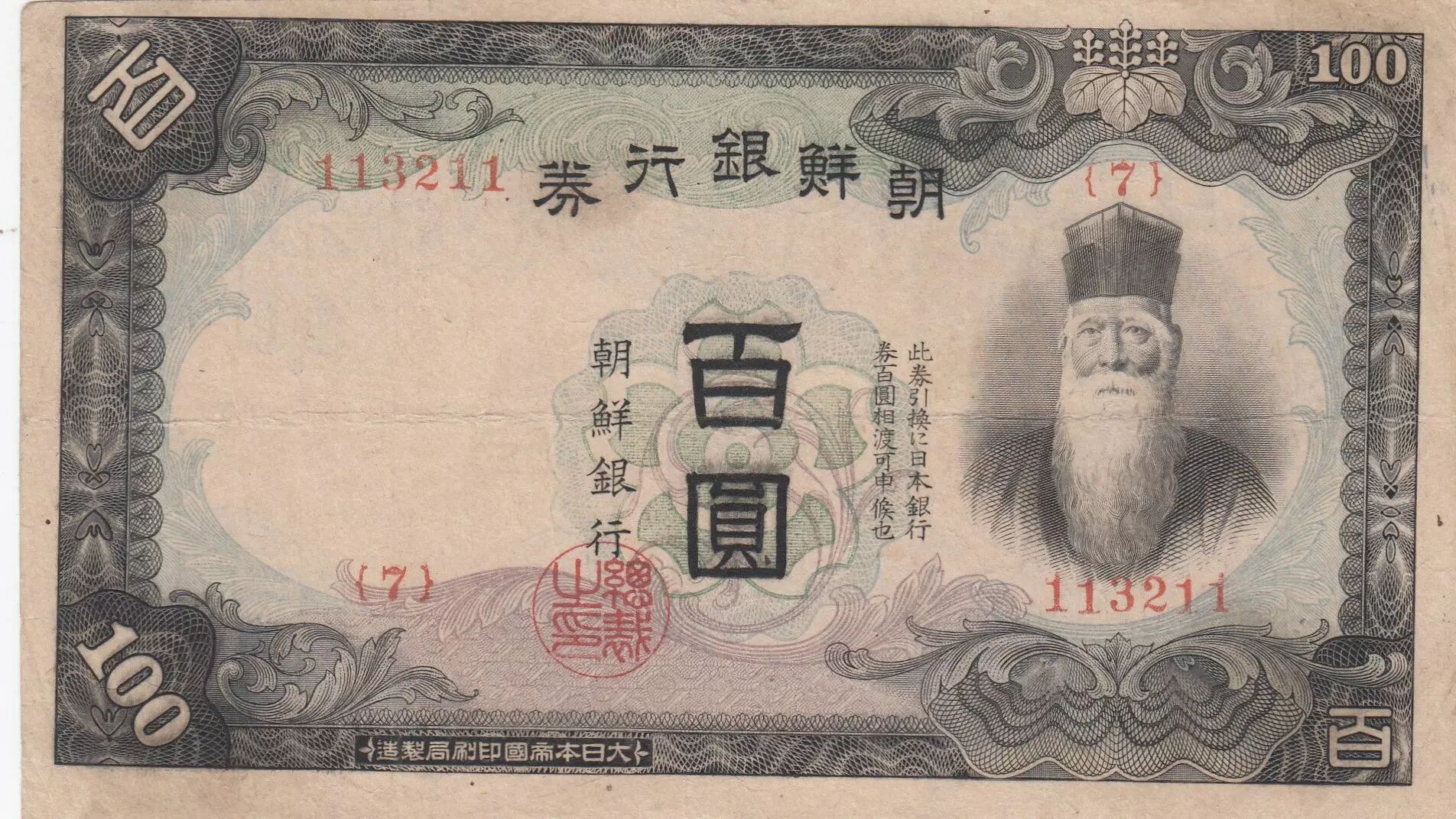 Billet Corée 100 Yen Homme barbu - ND (1944) - Bloc 7