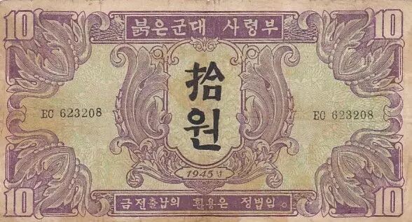 Billet Corée du Nord 10 won - Russian Army Headquarters - Série EC - 1945
