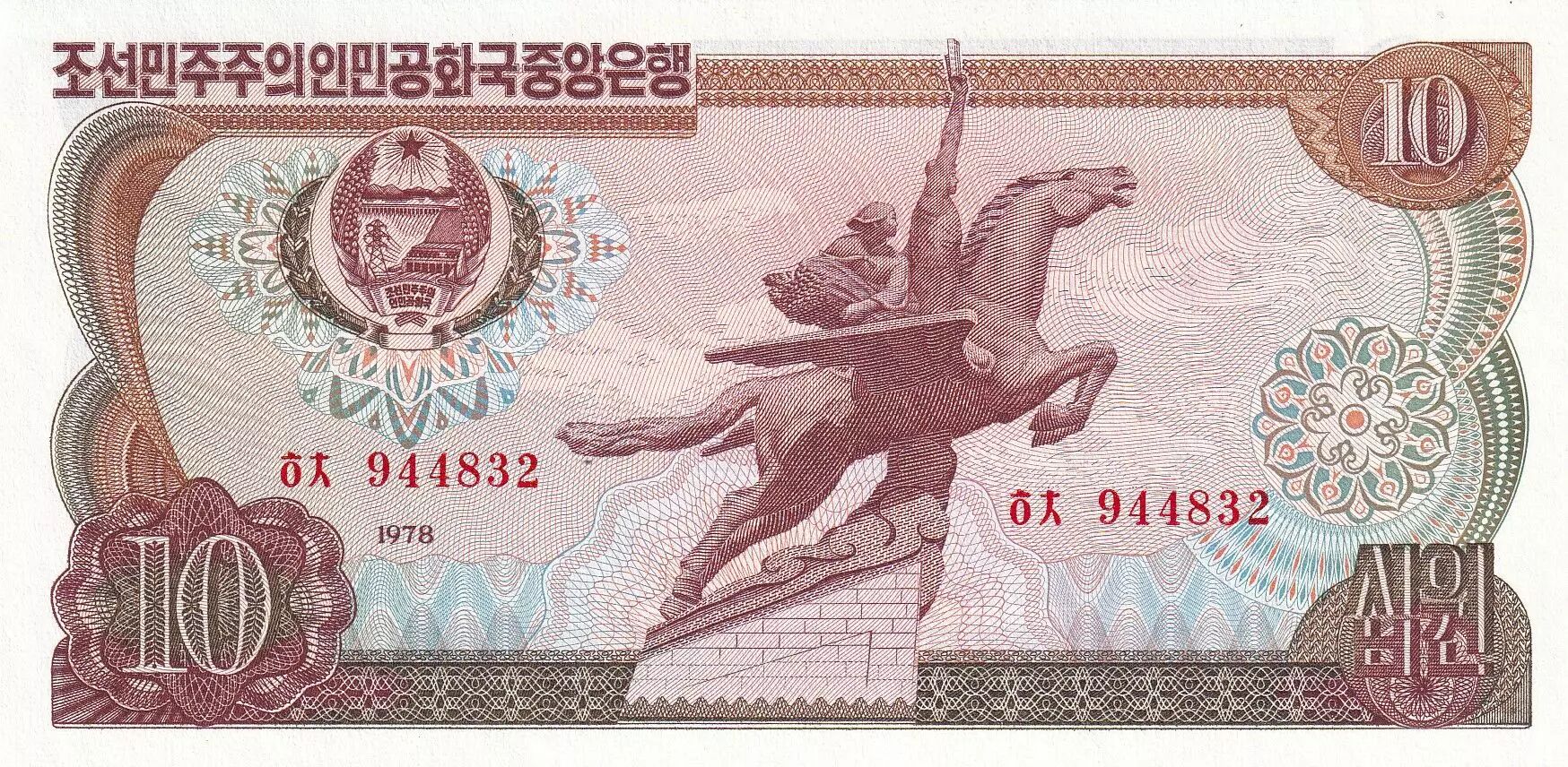 Billet Corée du Nord 10 won - Statue Chollima - Usine - 1978 - P.20d