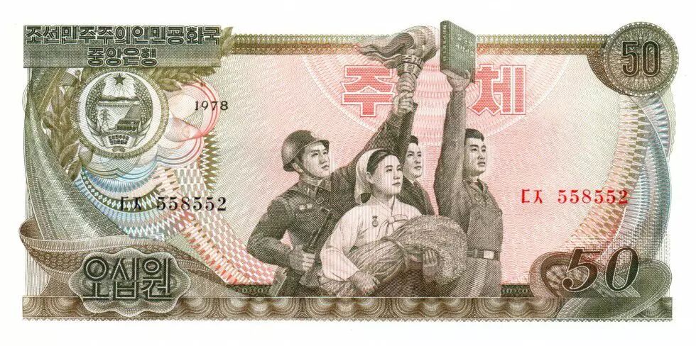 Billet Corée du Nord 50 Won Soldat, militants - 1978